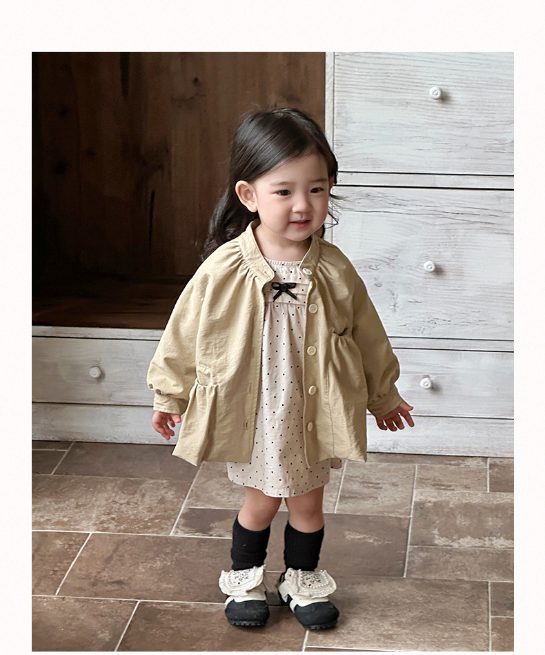 2025 가을 소녀 정장 복고풍 한국 스타일 윈드 브레이커 재킷 서양식 폴카 도트 드레스 아기 소녀 투피스 세트