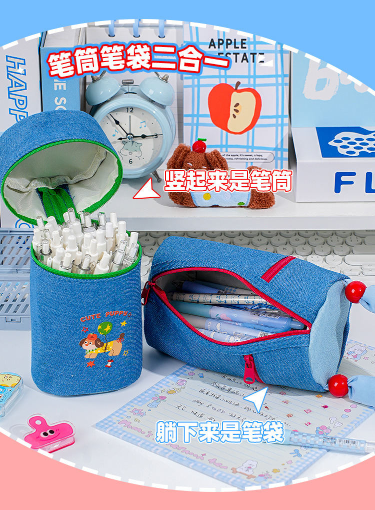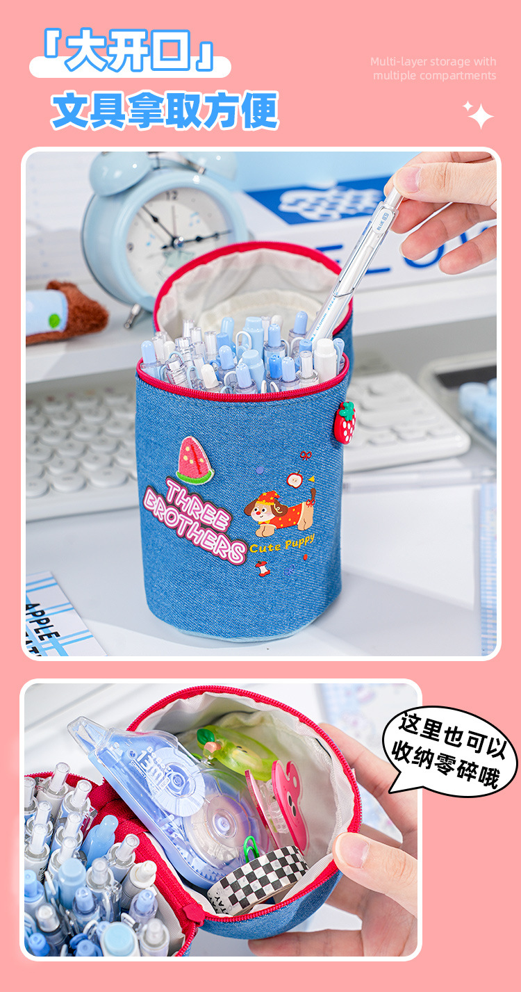 새로운 닥스훈트 대용량 펜 홀더 휴대용 양동이 연필 가방 학생 접이식 휴대용 외출 보관 대용량 문구스토어 가기