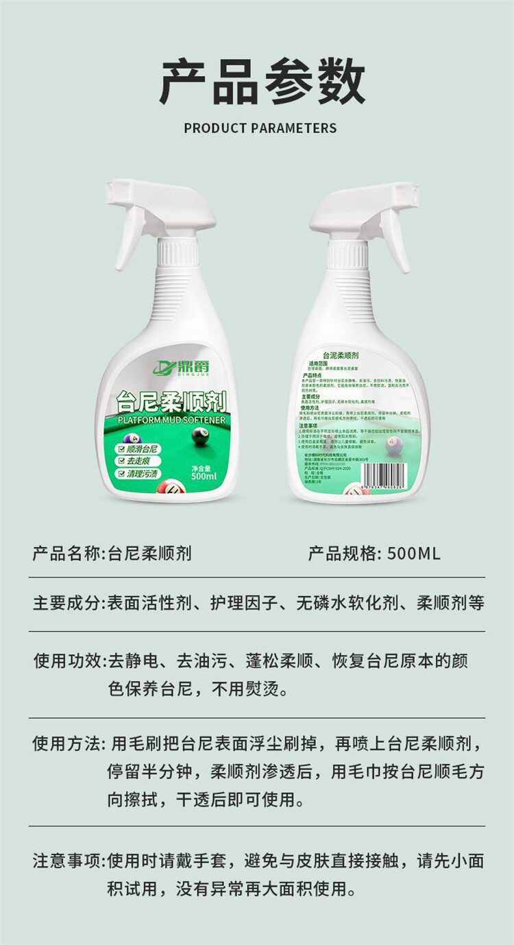 대형병 타니 유연제 타니 세척액 당구대 천으로 흰 반점과 얼룩을 제거하고 타니 천을 회복시켜 녹색으로 만듭니다.