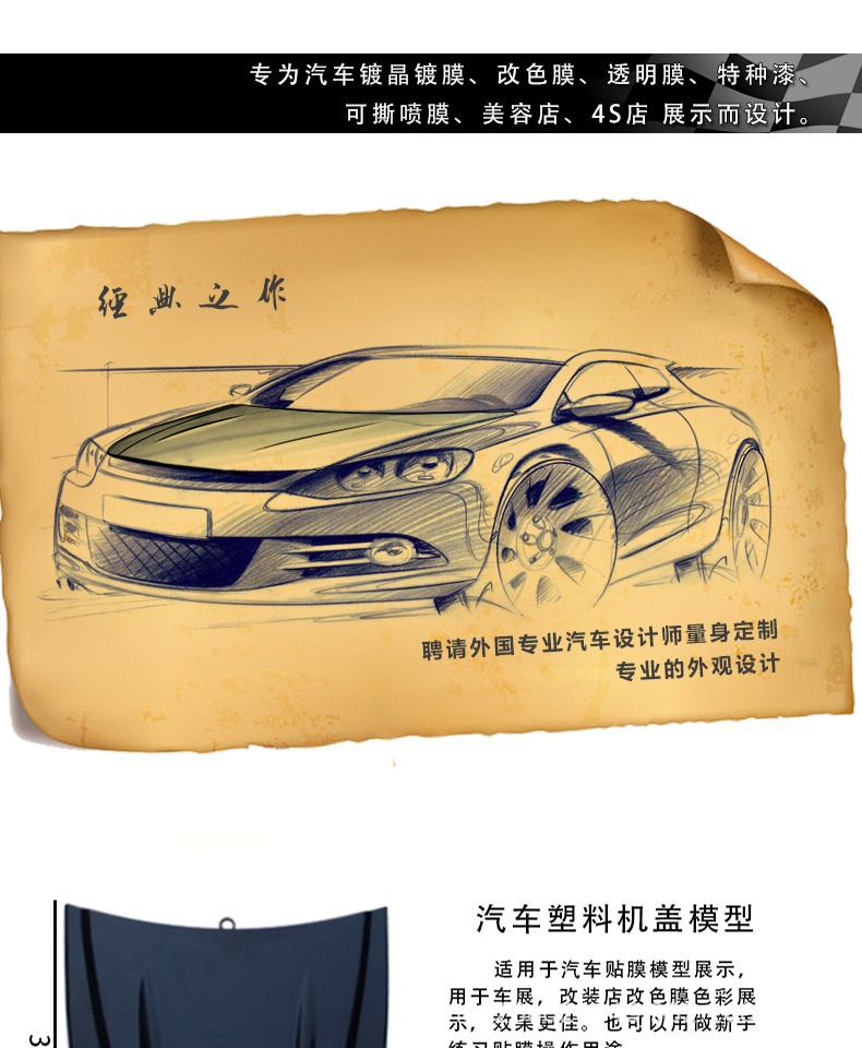 자동차 미용 플라스틱 소형 후드 모델 보이지 않는 자동차 커버 필름 크리스탈 코팅 디스플레이 보드 색상 변경 필름 컬러 카드스토어 가기