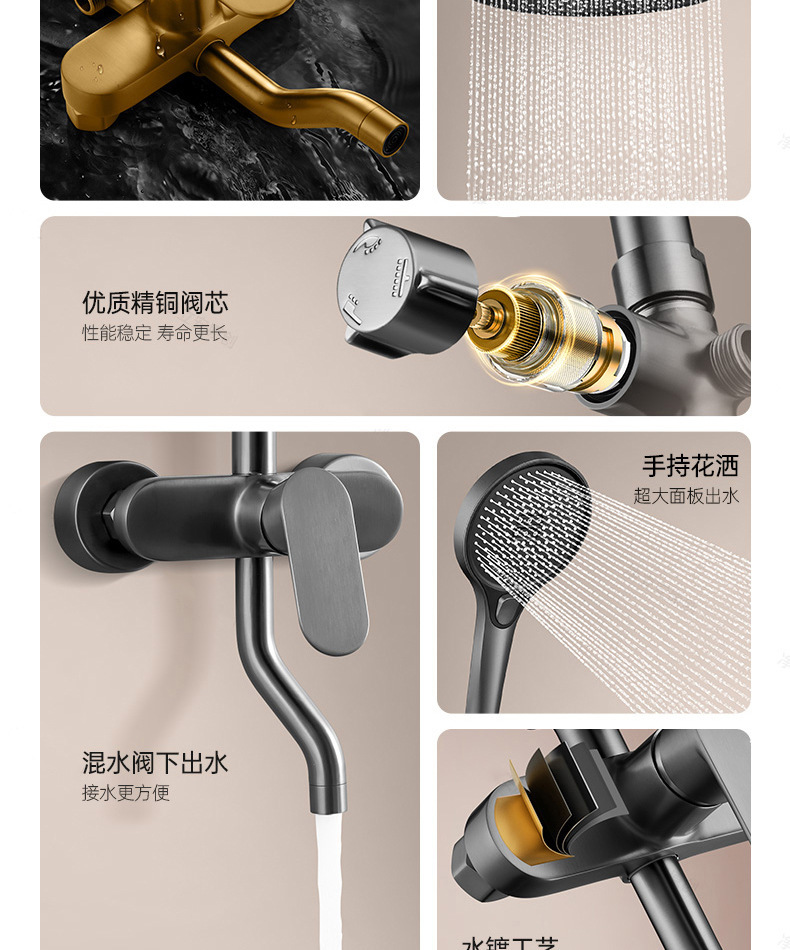 건 그레이 욕실 샤워 꽃 와인 세트 가정용 가압 대형 워터 샤워 헤드 욕실 전체 구리 샤워 샤워기스토어 가기