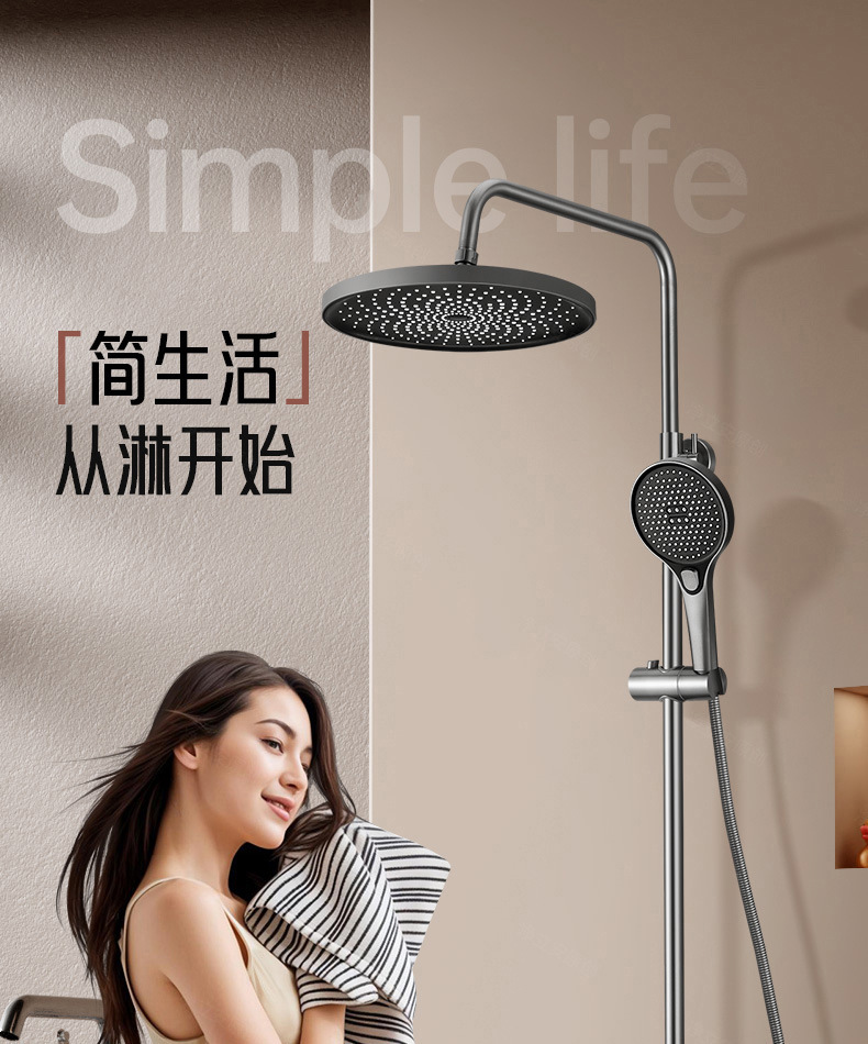 • 라이트 럭셔리 그레이(3구) 원형 대용량 샤워 세트