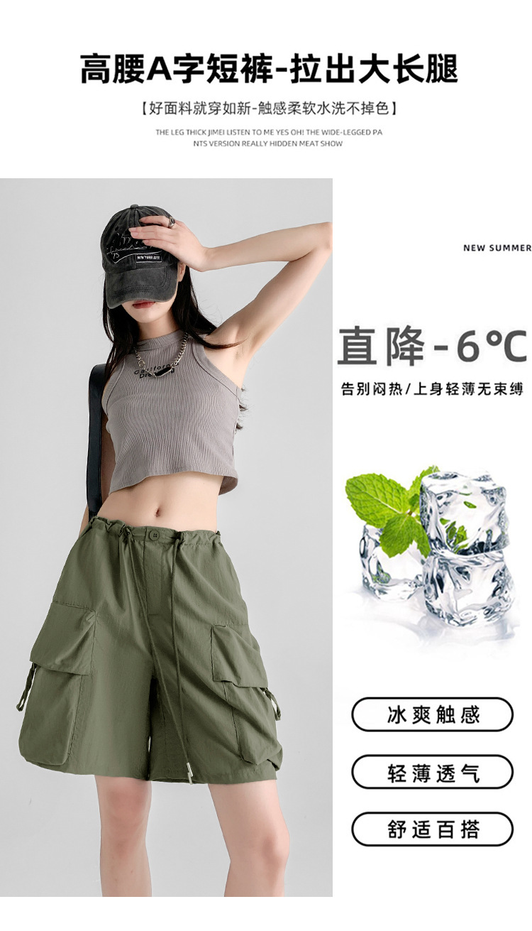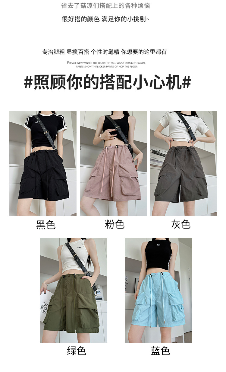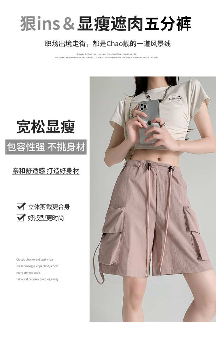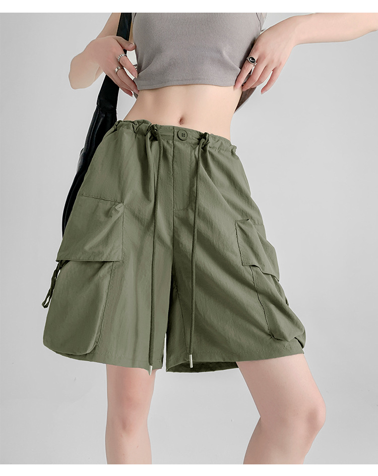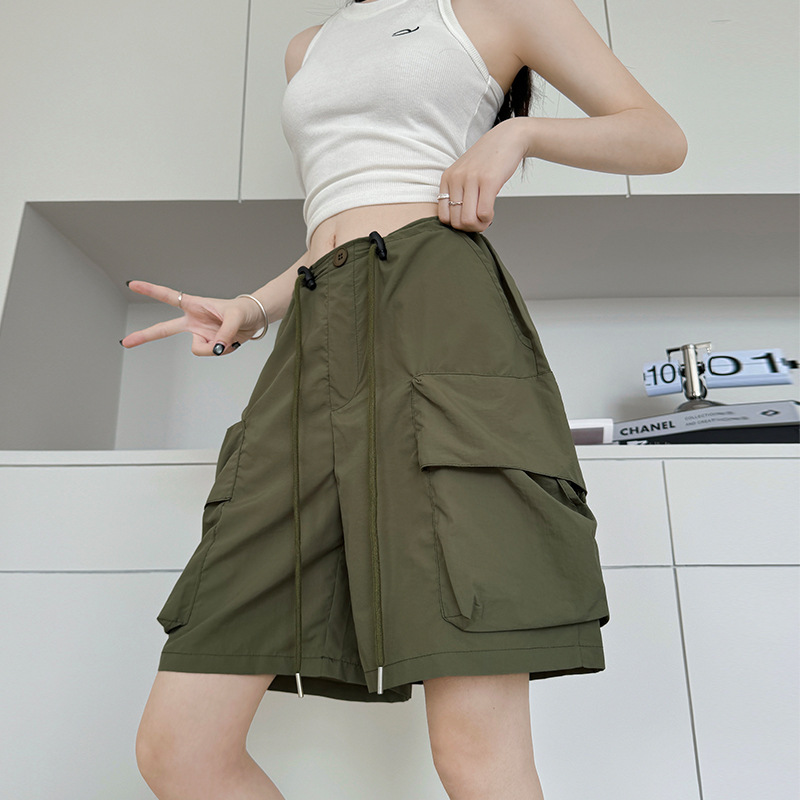 여성용 빅 포켓 카고 반바지 여름 얇은 2025 신작 여성 아메리칸 캐주얼 바지 속건성 와이드 레그 5부 중간 바지스토어 가기