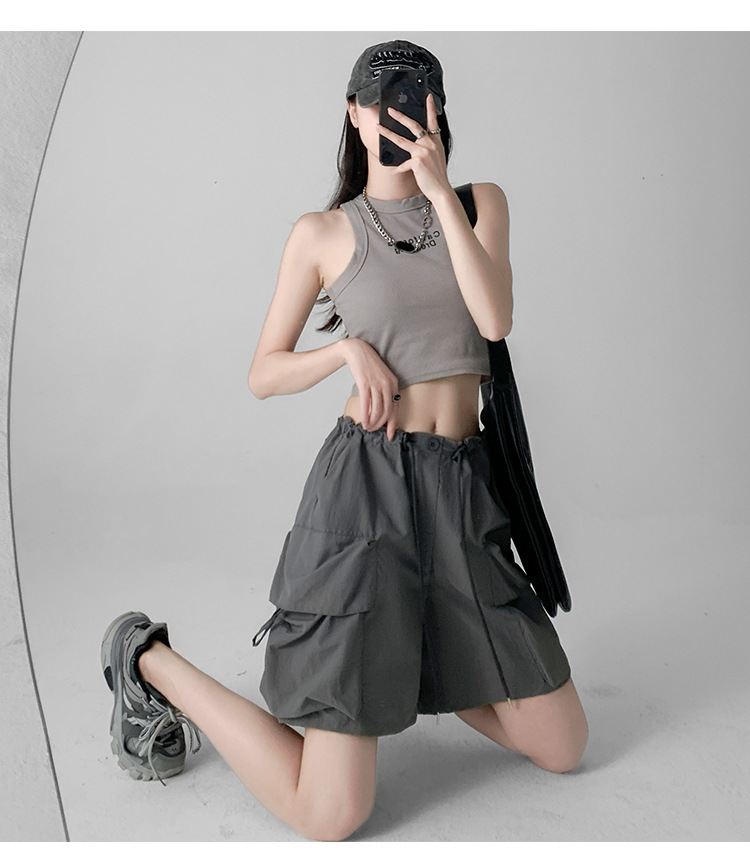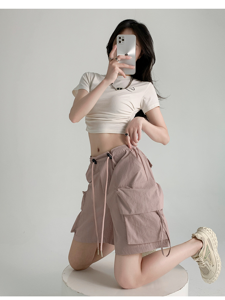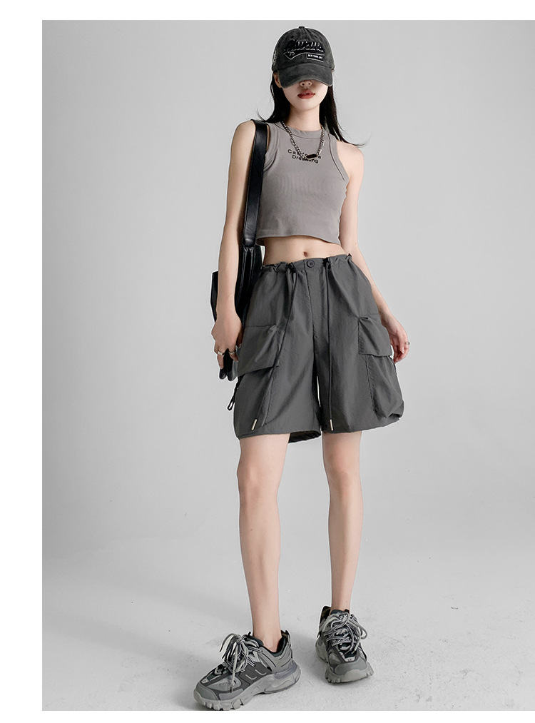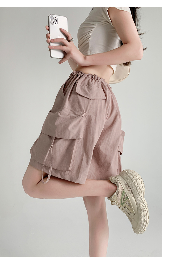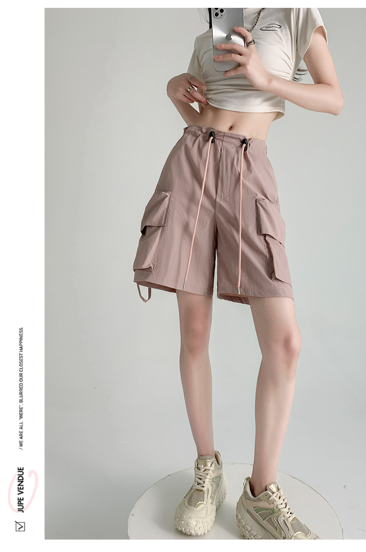 여성용 빅 포켓 카고 반바지 여름 얇은 2025 신작 여성 아메리칸 캐주얼 바지 속건성 와이드 레그 5부 중간 바지스토어 가기