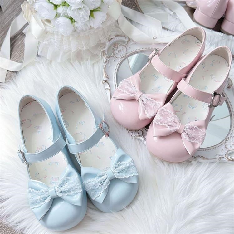 귀엽고 달콤한 리본 메리제인 여성화, 중간 굽의 로리타 일본식 소프트 소녀 신발, 스커트와 작은 가죽 신발스토어 가기