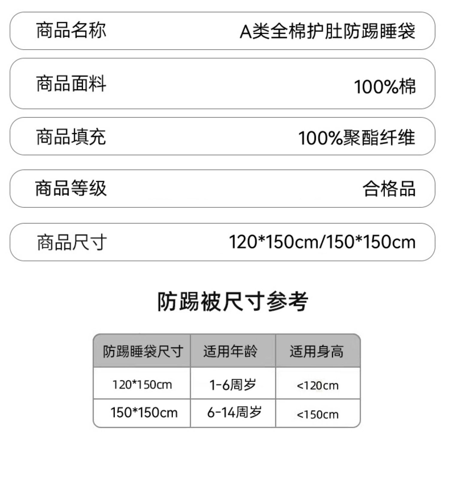 • 150x150cm 일체형 발길질 방지 이불 [6-14세]