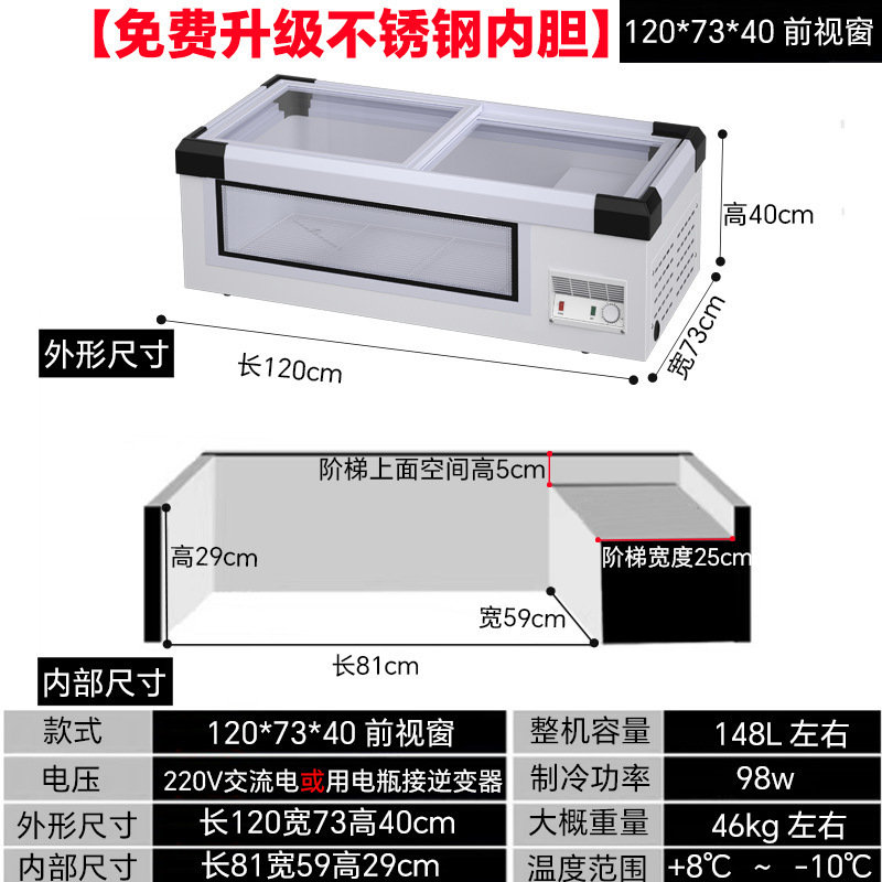 • 업그레이드된 저온 길이 120 폭 62 높이 45 [전면창 +10도 ~ -15도]