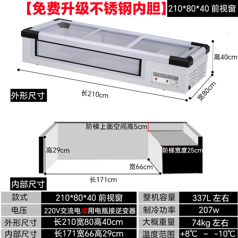 • 업그레이드된 스테인레스 스틸 라이너 - 길이 210 너비 80 높이 40 [전면 창 +10도 ~ -10도]