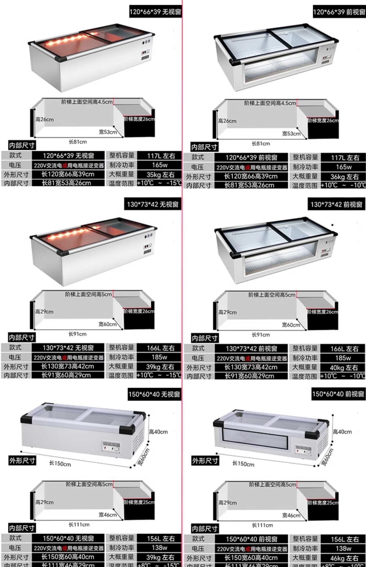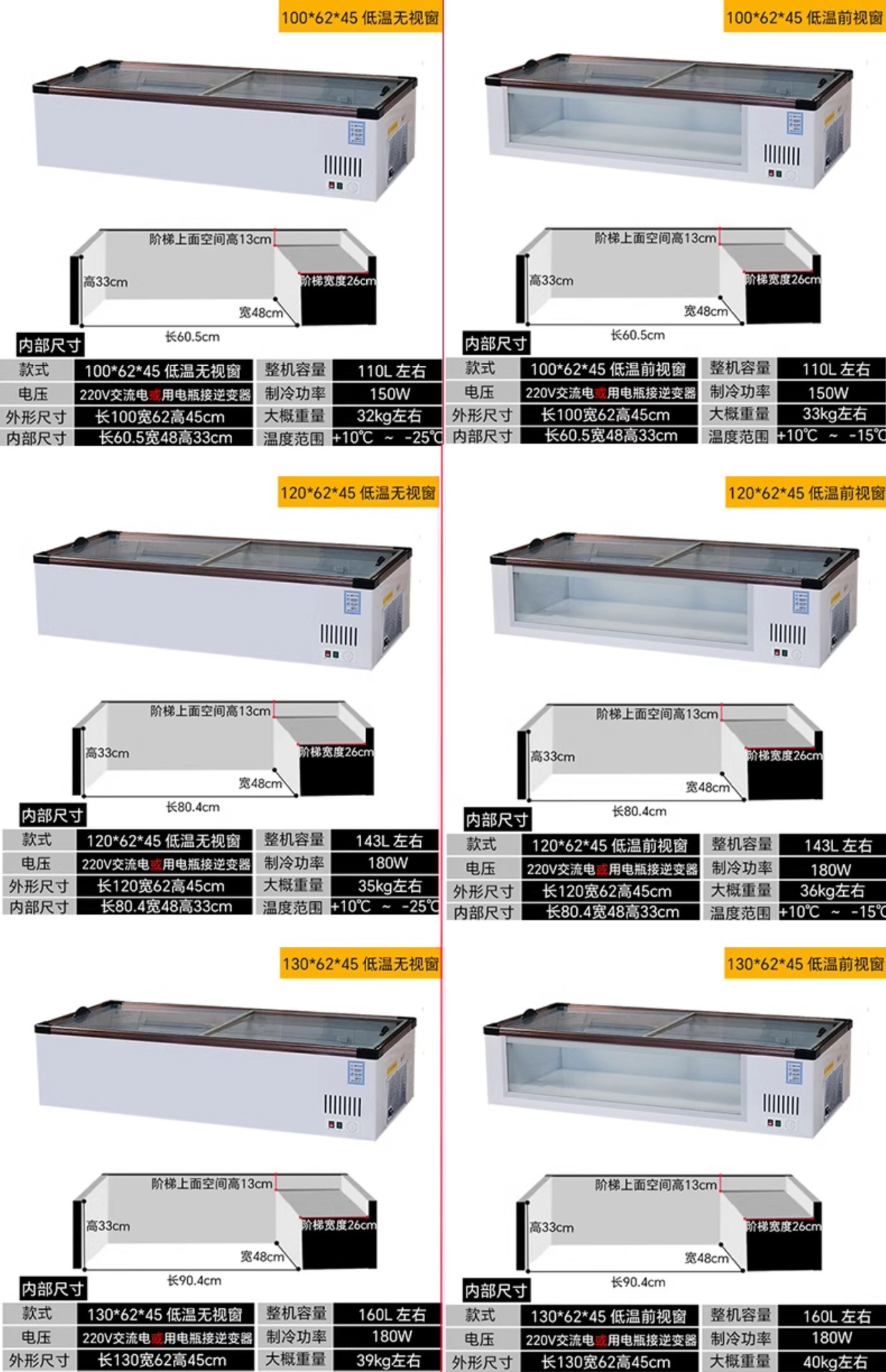 • 업그레이드된 저온 길이 130 폭 62 높이 45 [전면창 +10도~-15도]