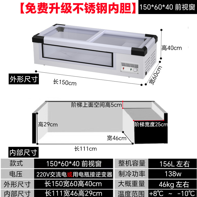 • 업그레이드된 저온 길이 150 폭 62 높이 45 [전면창 +10도 ~ -15도]