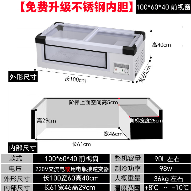• 업그레이드된 저온 길이 100 폭 62 높이 45 [전면창 +10도 ~ -15도]