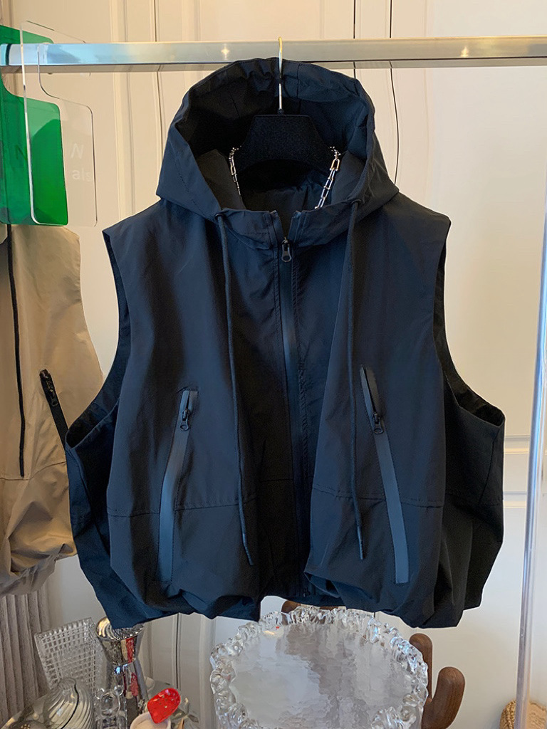여성을위한 유럽 스타일 조끼 2025 봄, 여름 새로운 스타일 레이어드 작은 양복 조끼 다목적 후드 재킷 작업복 조끼 유행