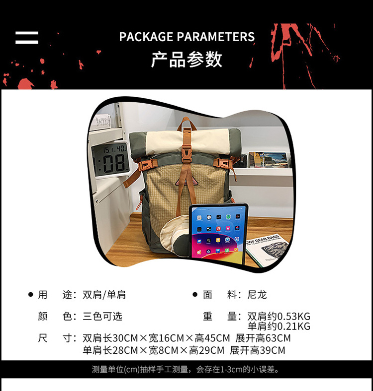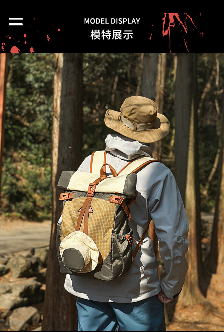 아웃도어 스포츠 하이킹 백팩, 발수성, 대용량 캠핑 여행 백팩, 트렌디한 캐주얼 숄더 크로스백