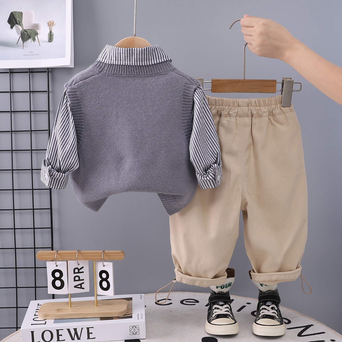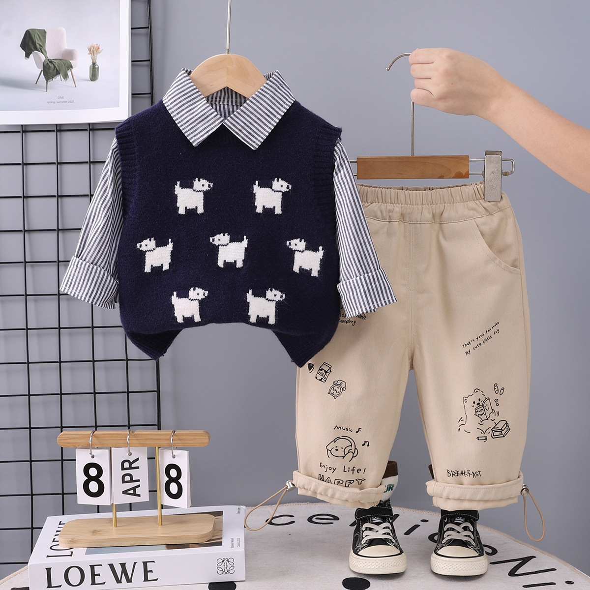 소년 개 스웨터 조끼 정장 가을 스타일 아기 봄, 가을 옷 아기 아동복 3 피스 세트스토어 가기