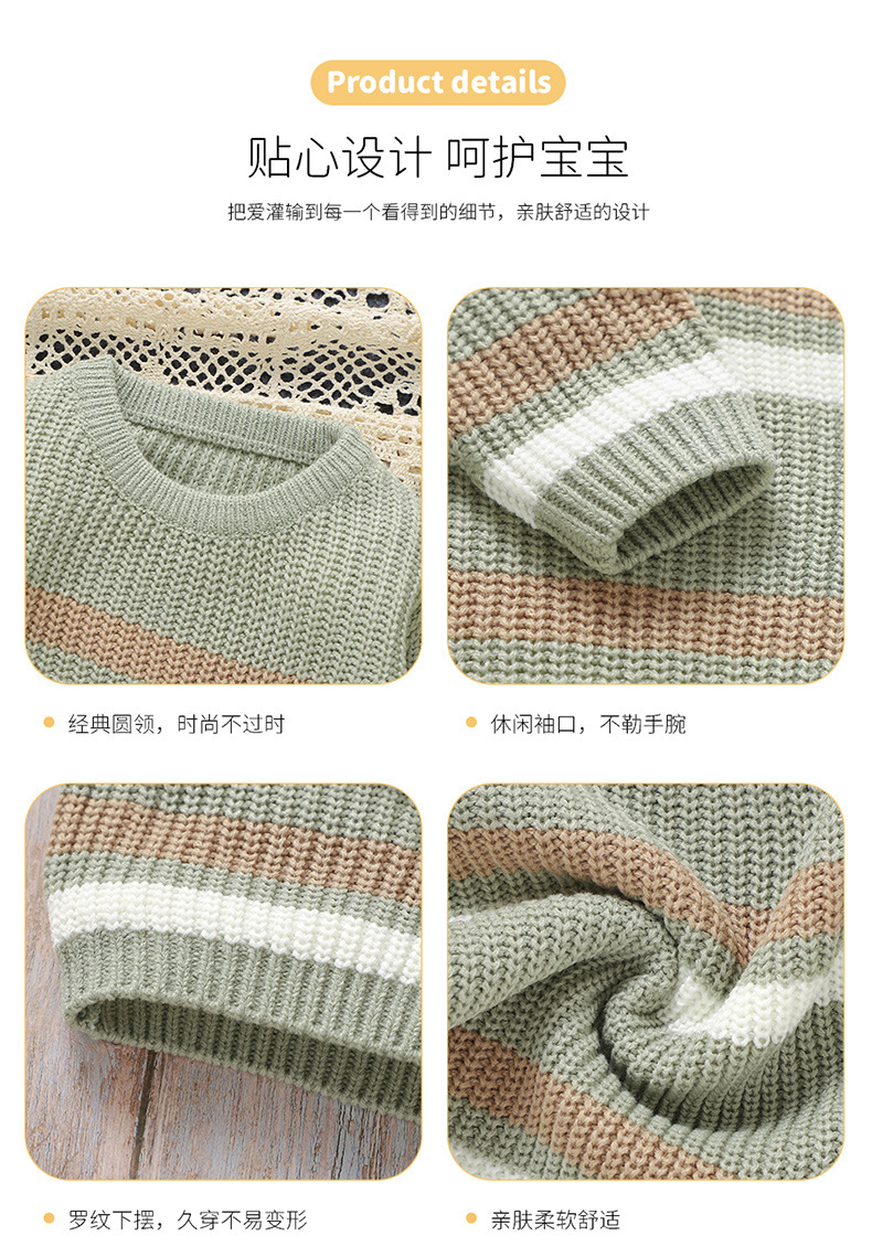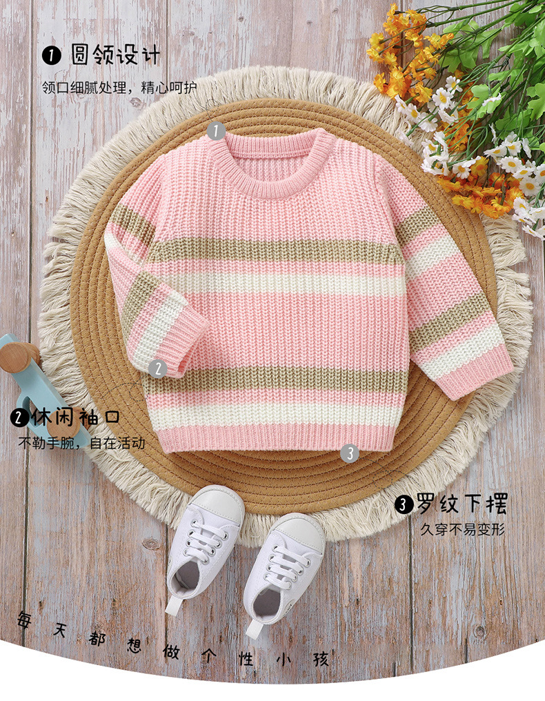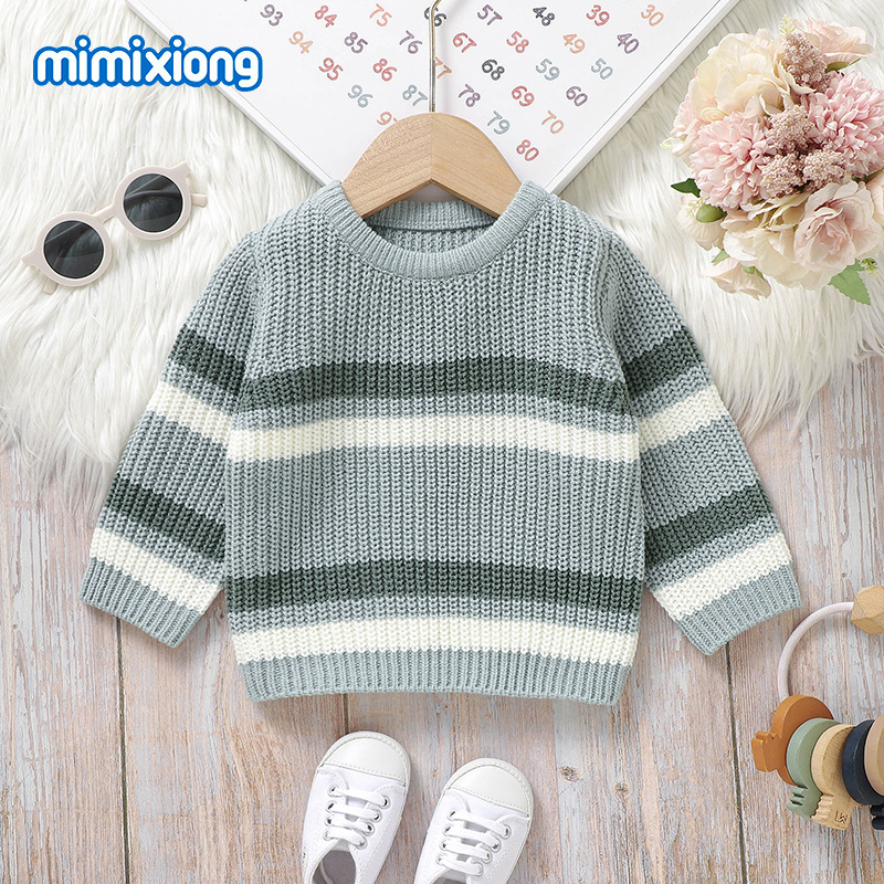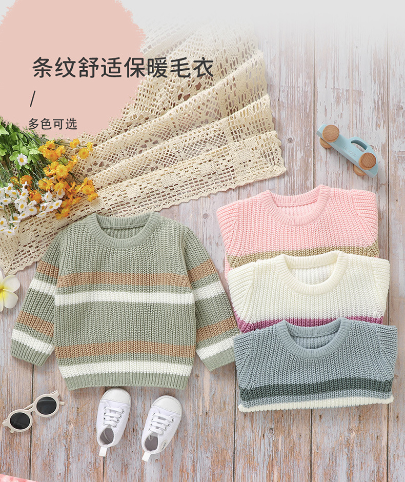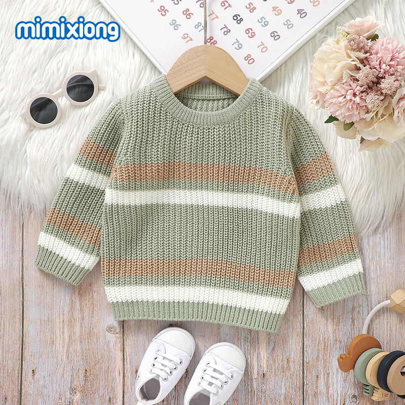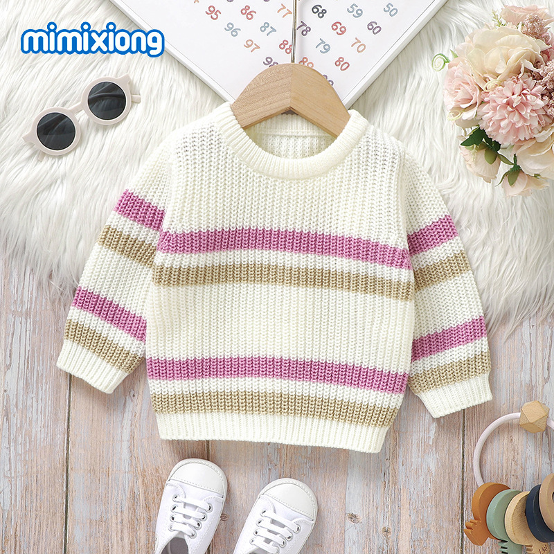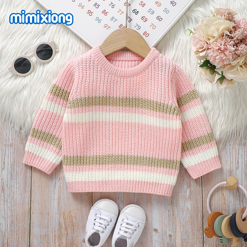 Ins 뜨거운 판매 새로운 유아 니트 라운드 넥 스트라이프 컬러 블록 탑 스웨터스토어 가기