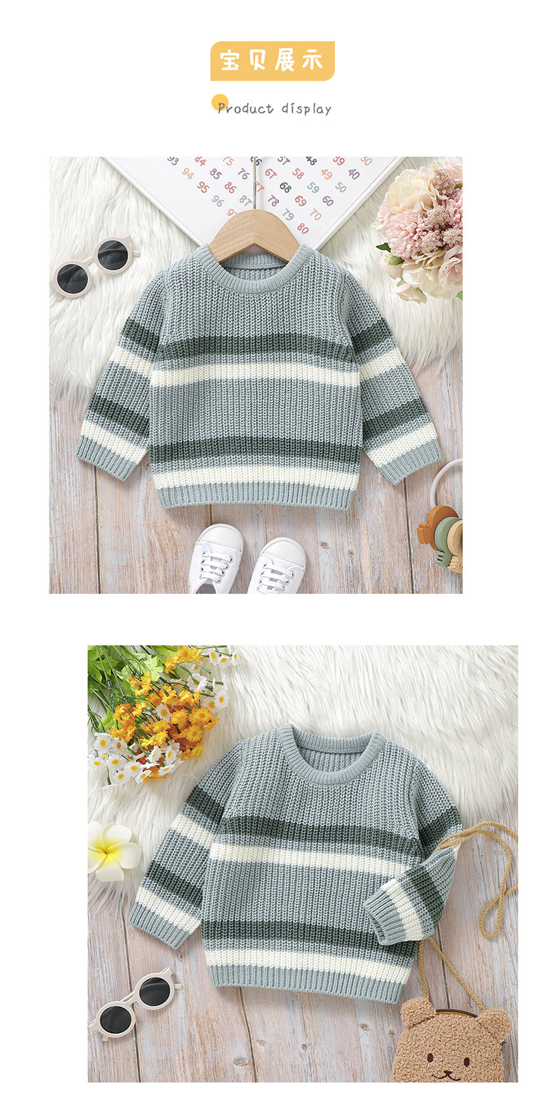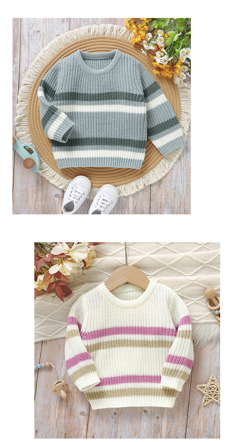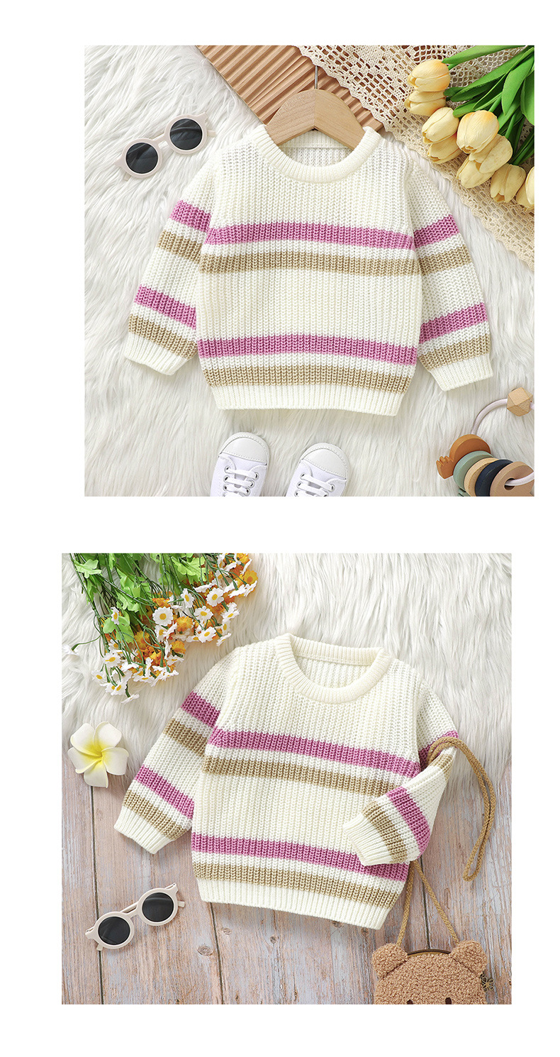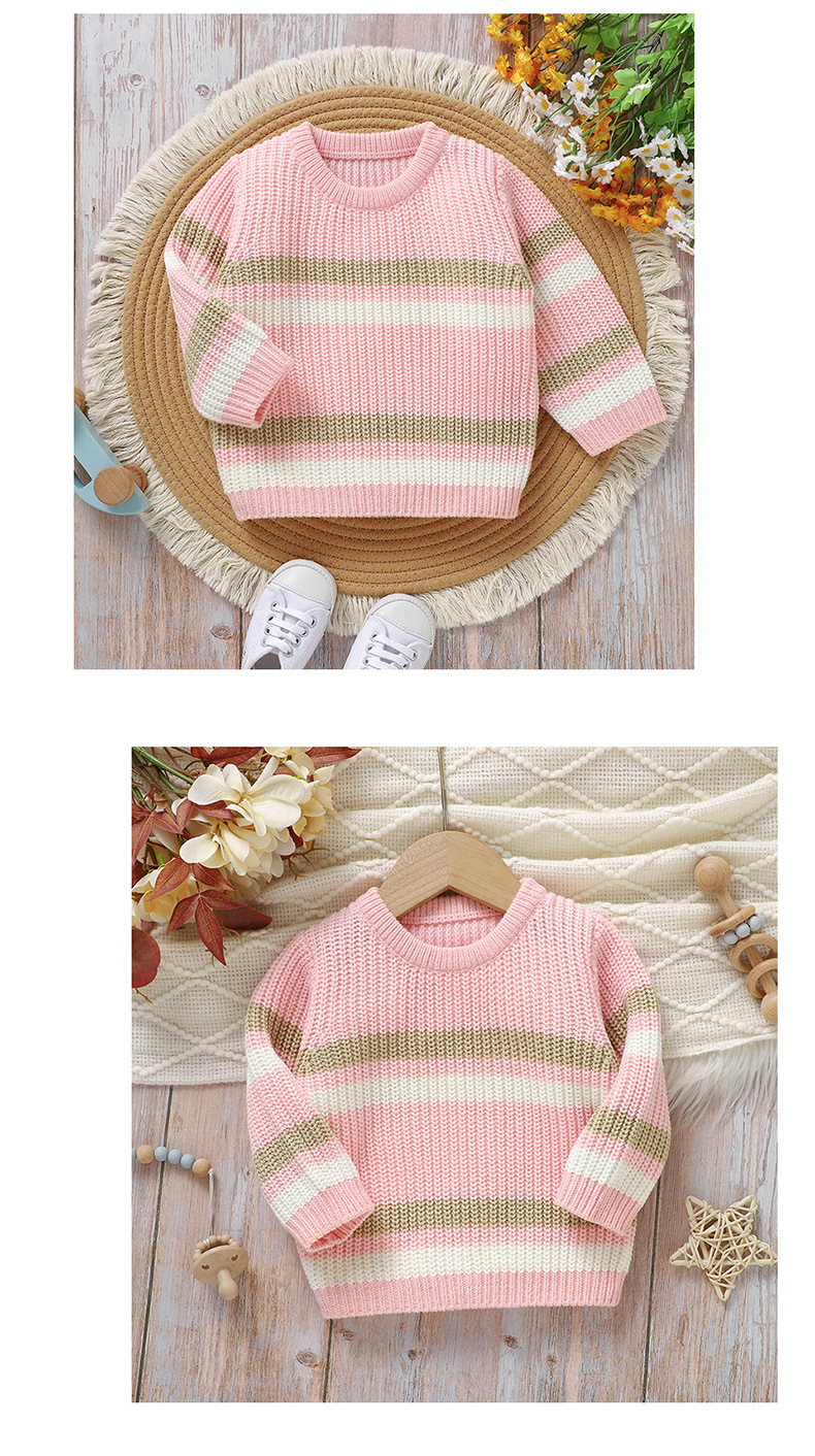 Ins 뜨거운 판매 새로운 유아 니트 라운드 넥 스트라이프 컬러 블록 탑 스웨터스토어 가기