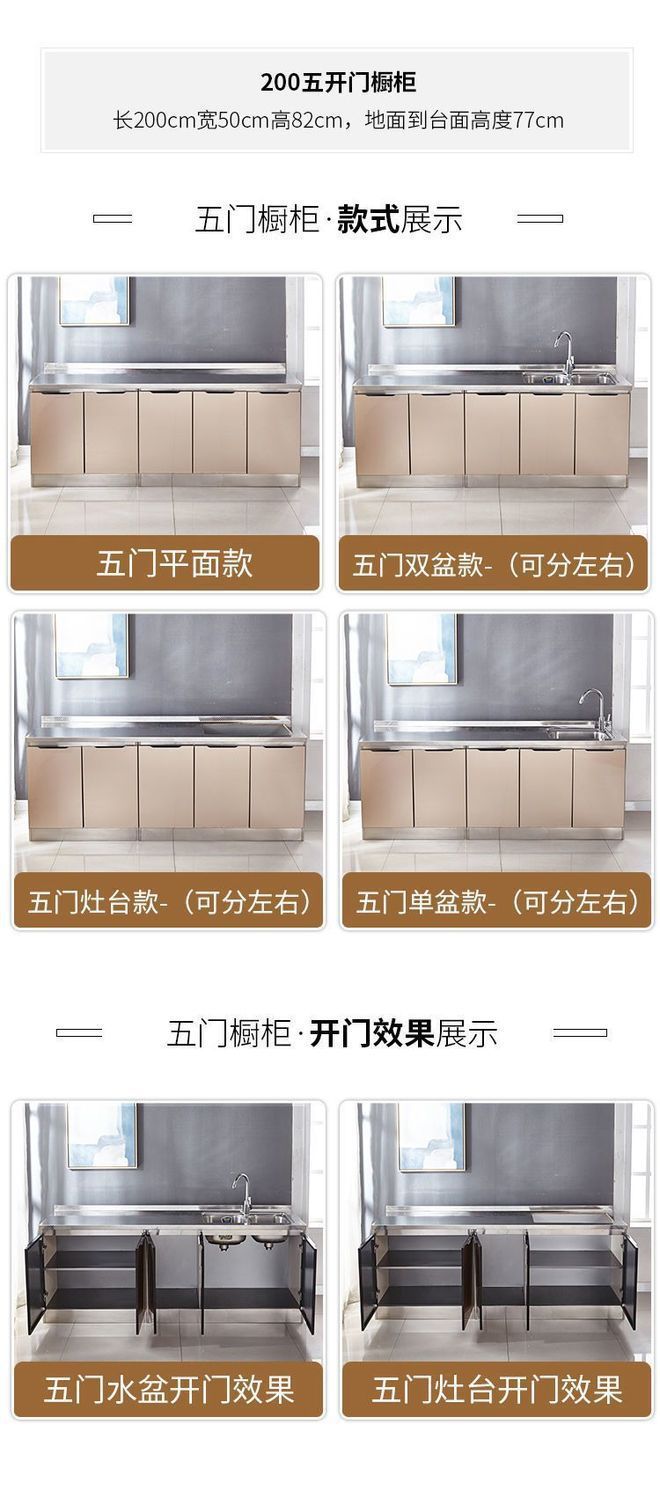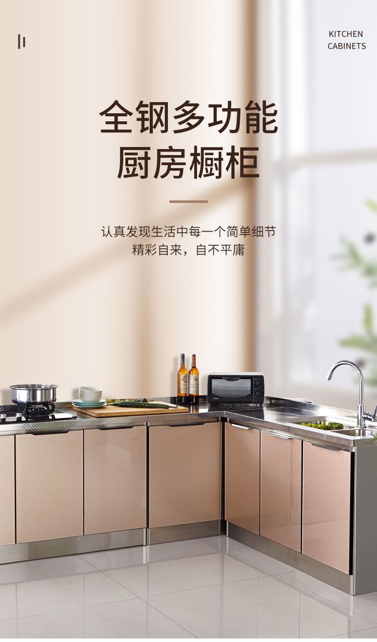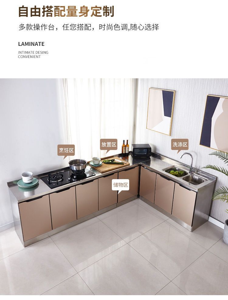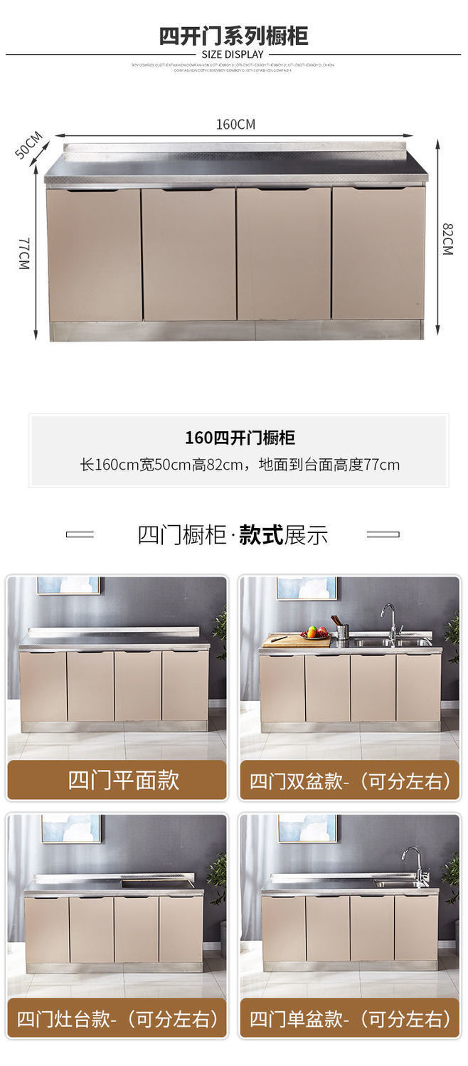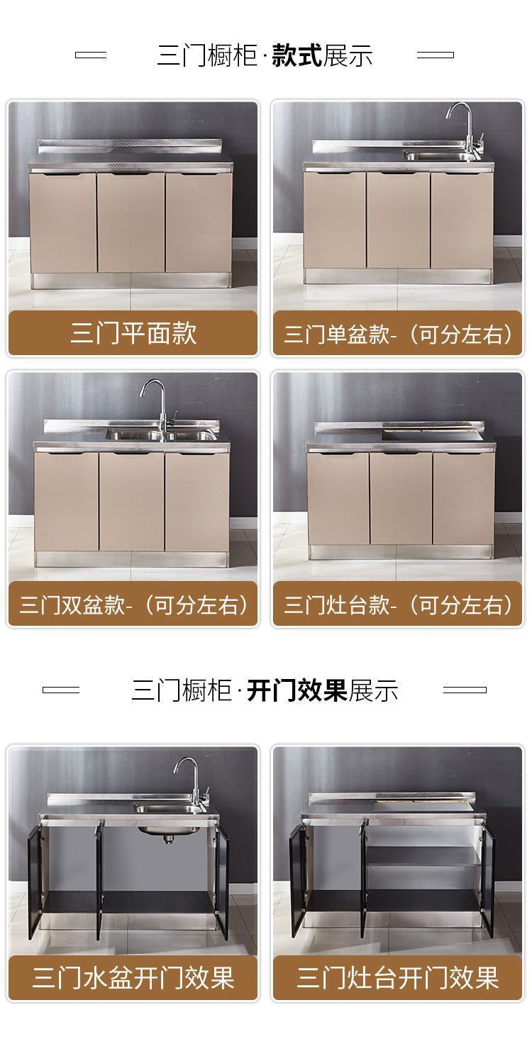 스테인레스 스틸 주방 캐비닛 간단한 스토브 캐비닛 올인원 홈 주방 캐비닛 조립 경제적 인 전체 식당 캐비닛스토어 가기