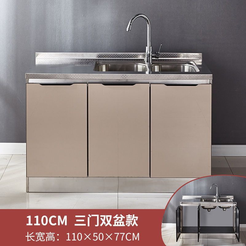 스테인레스 스틸 주방 캐비닛 간단한 스토브 캐비닛 올인원 홈 주방 캐비닛 조립 경제적 인 전체 식당 캐비닛