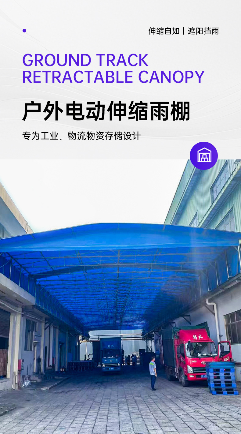 공장 통로 원격 제어 개폐식 차양 야외 차양 전기 차고 공장 트랙 공중에 매달린 개폐식 차양스토어 가기