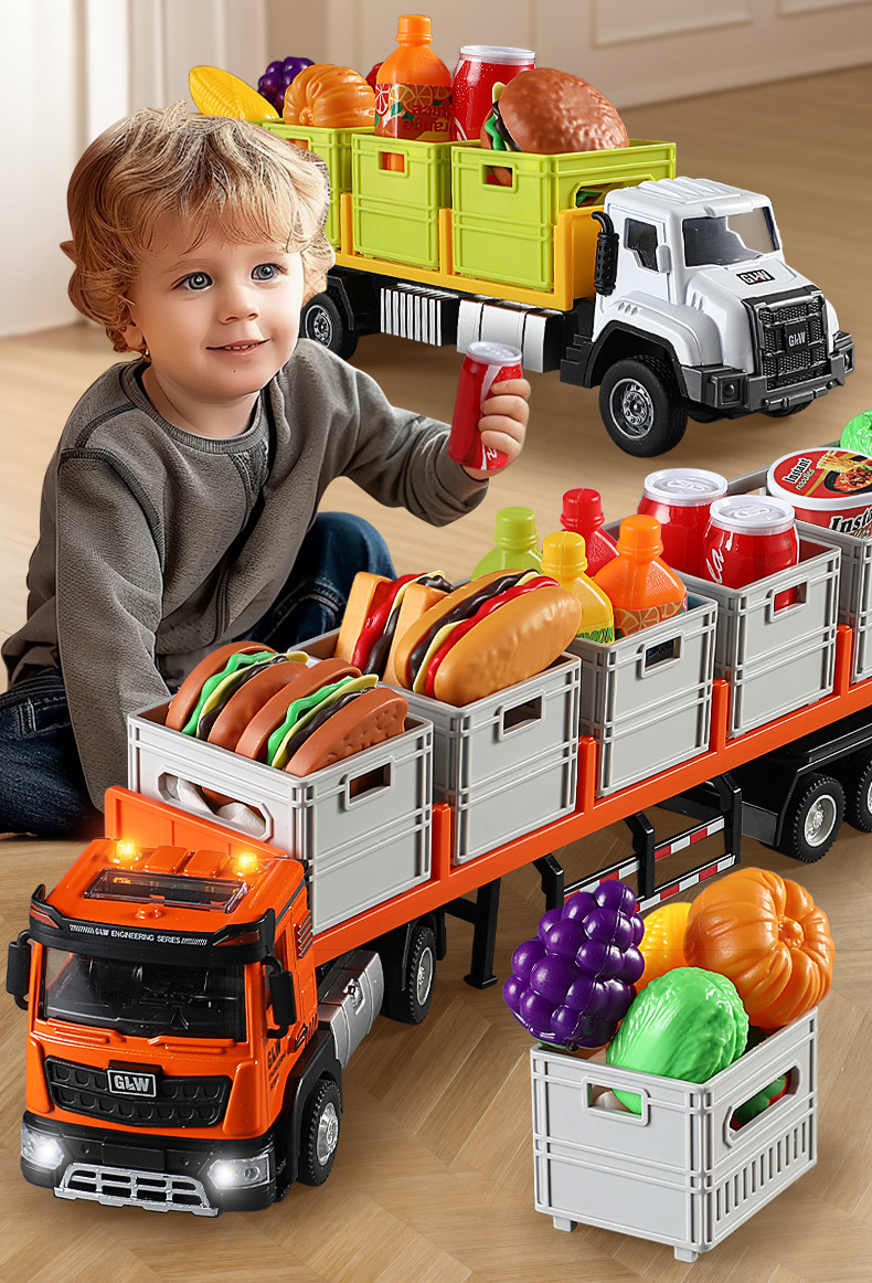 대형 합금 운송 트럭 장난감 어린이 시뮬레이션 트레일러 모델 컨테이너 트럭 자동차 소년 어린이 날 선물스토어 가기
