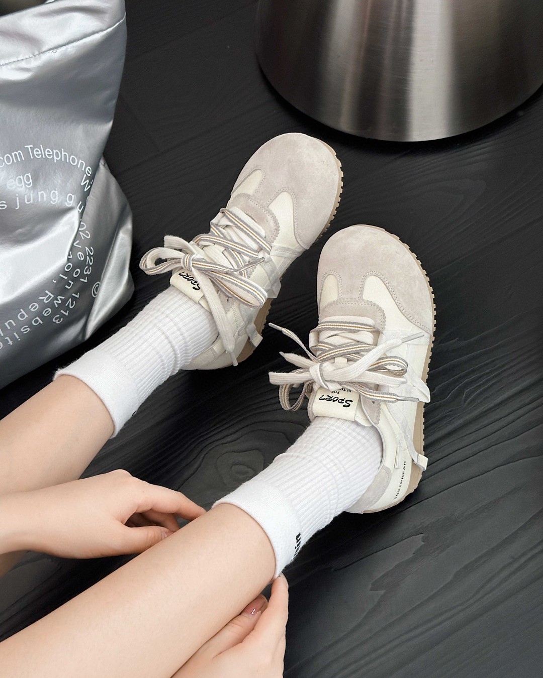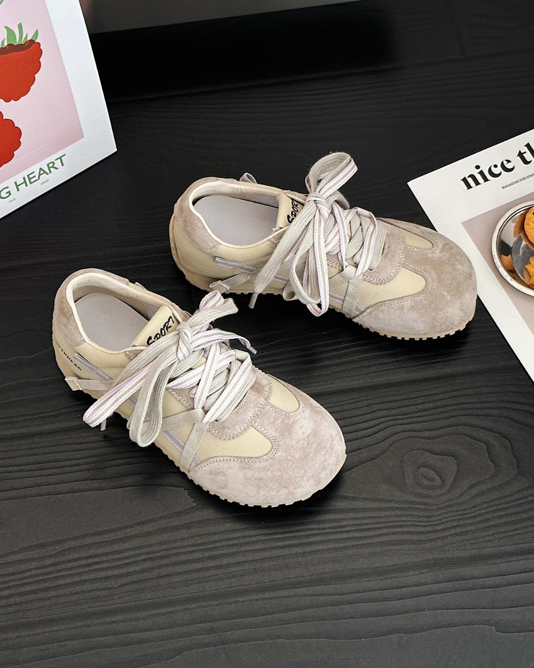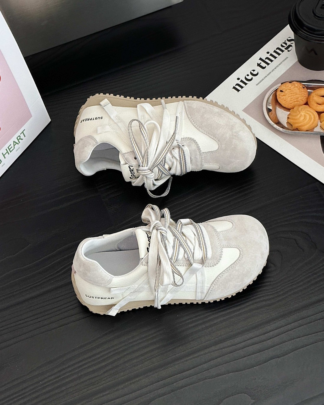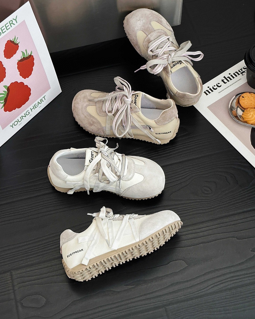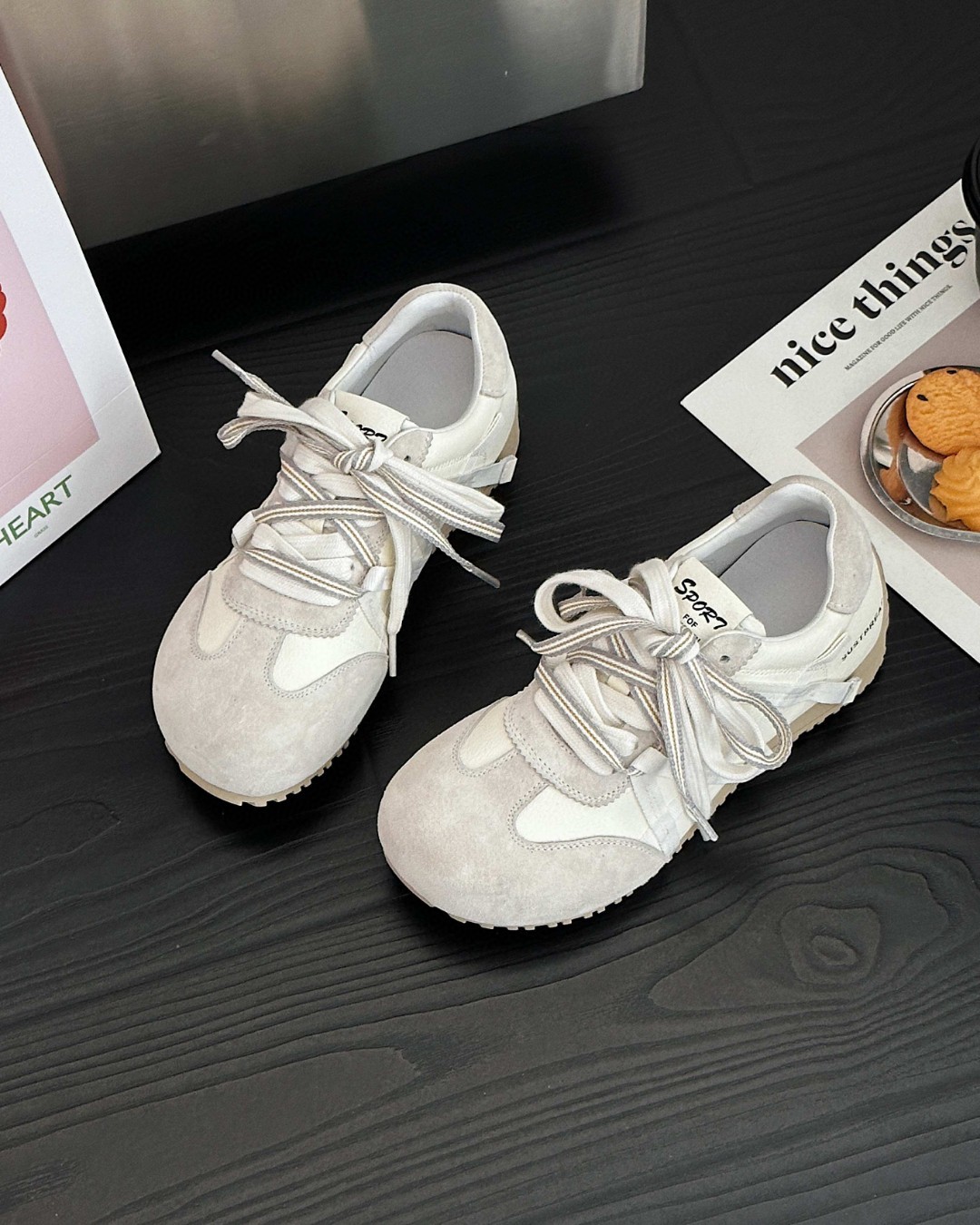 여성을위한 복고풍 정품 가죽 육군 훈련 신발 2025 초가을 새로운 다목적 부드러운 밑창 더블 신발 끈 플랫 헤드 스포츠 및 레저 포레스트 검프 신발