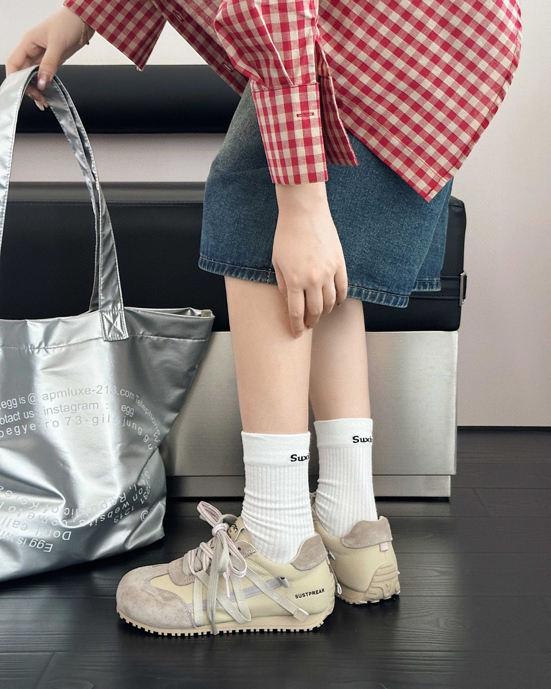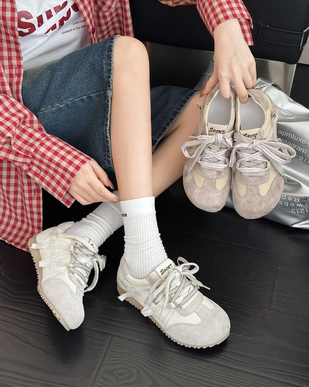 여성을위한 복고풍 정품 가죽 육군 훈련 신발 2025 초가을 새로운 다목적 부드러운 밑창 더블 신발 끈 플랫 헤드 스포츠 및 레저 포레스트 검프 신발스토어 가기