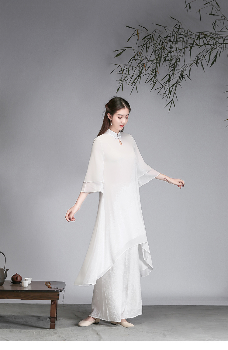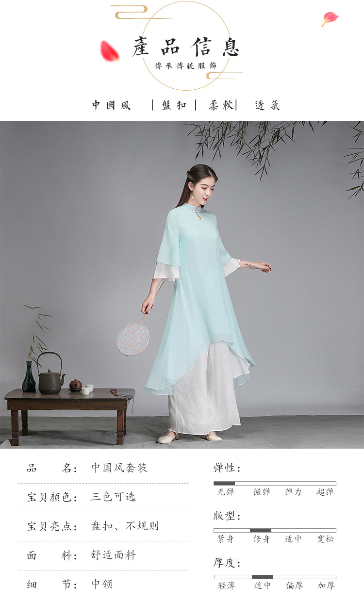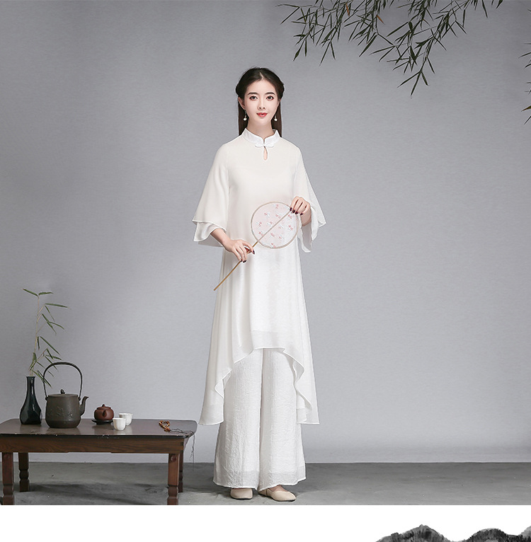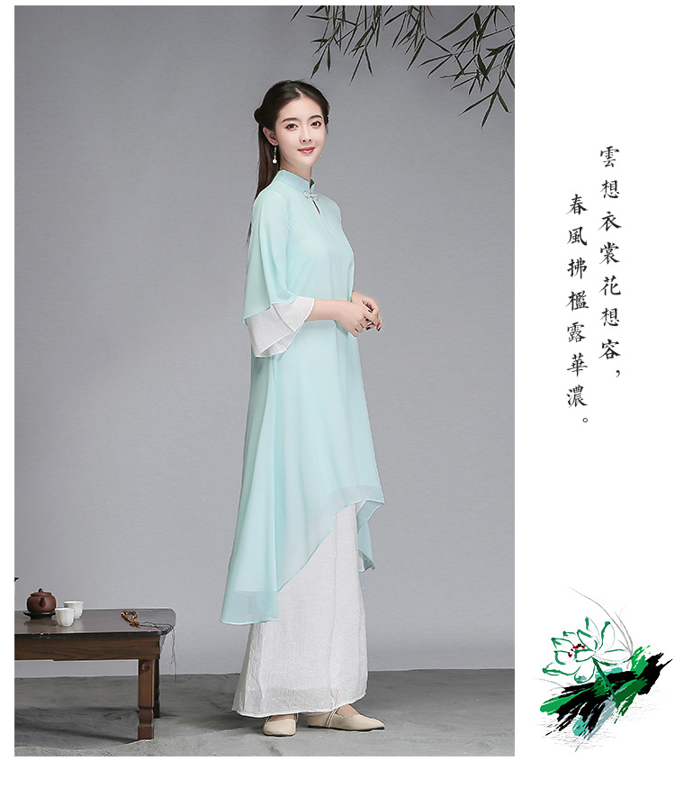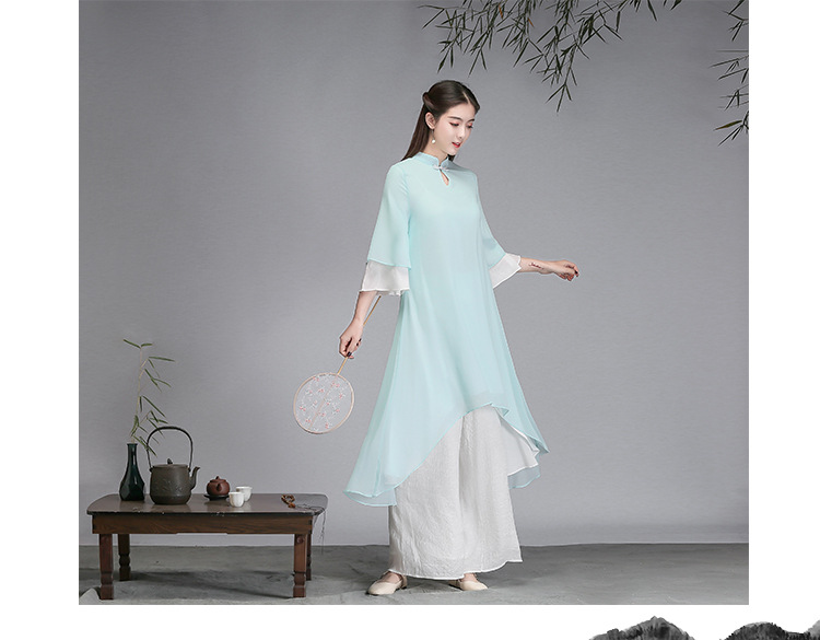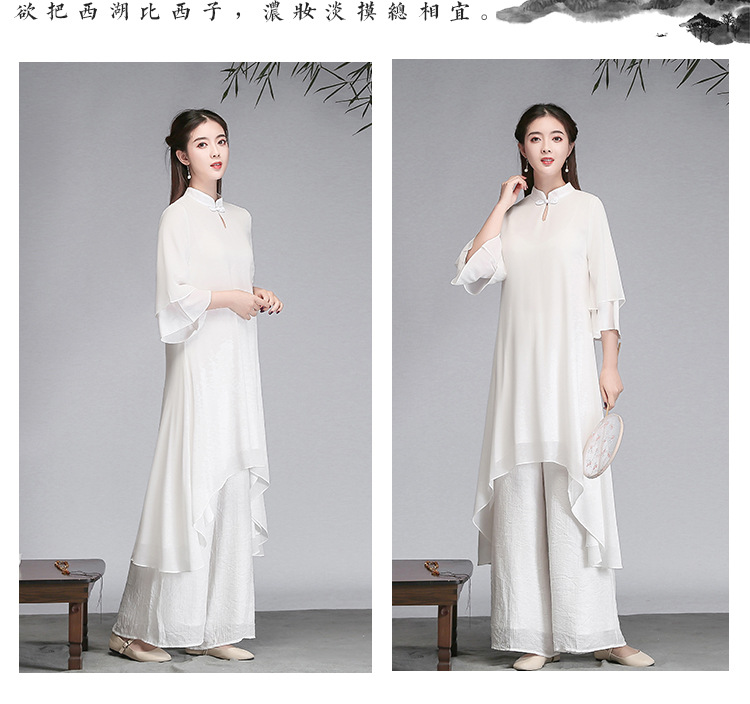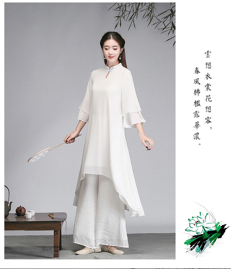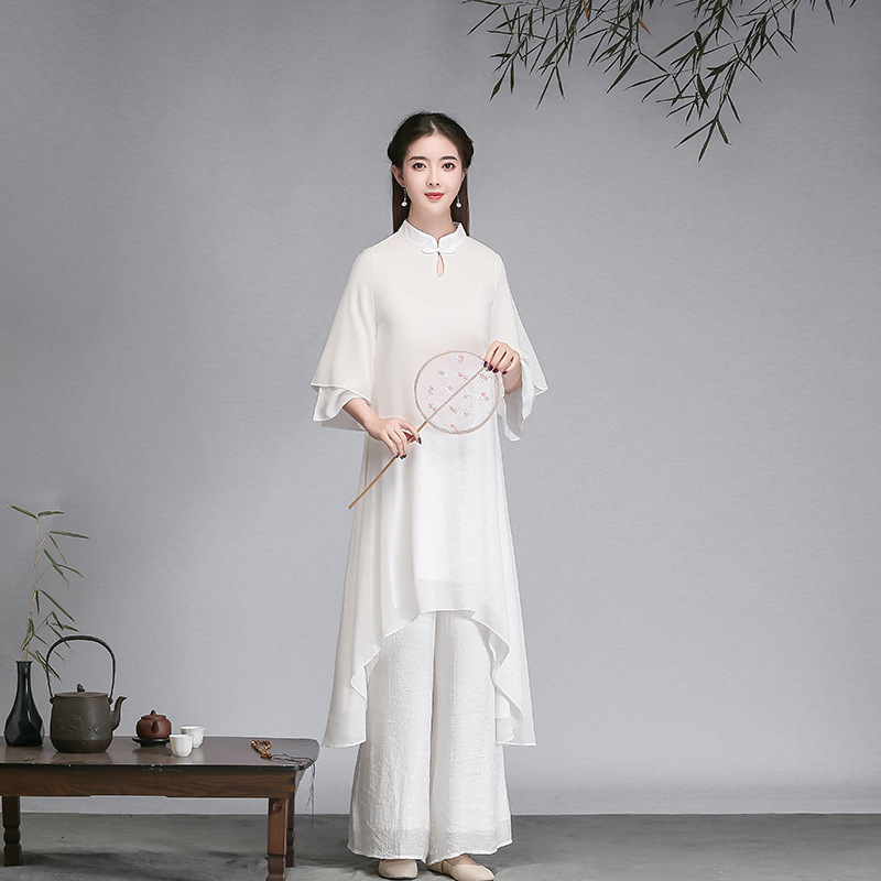 중국 스타일 선 여성 쉬폰 드레스 차 의류 선 명상 의류 선 댄스 의류 복고풍 스타일 Hanfu 투피스 세트스토어 가기