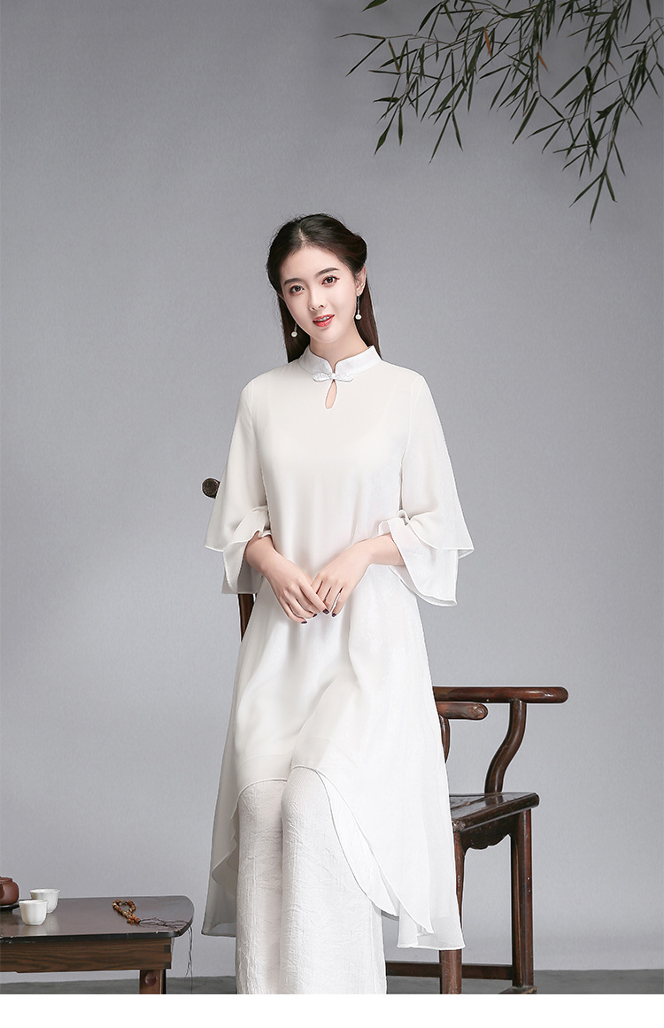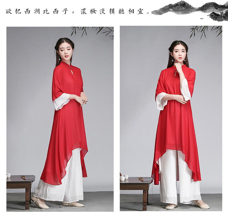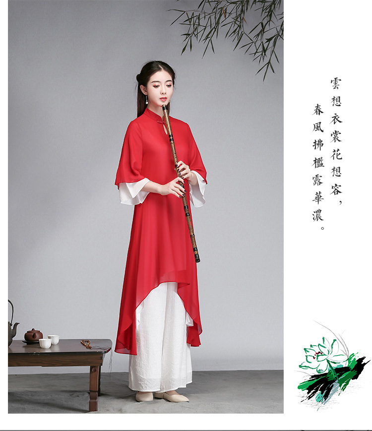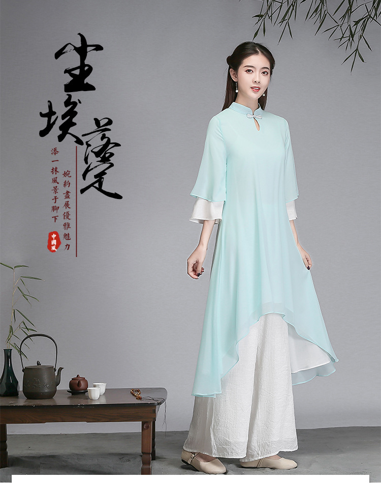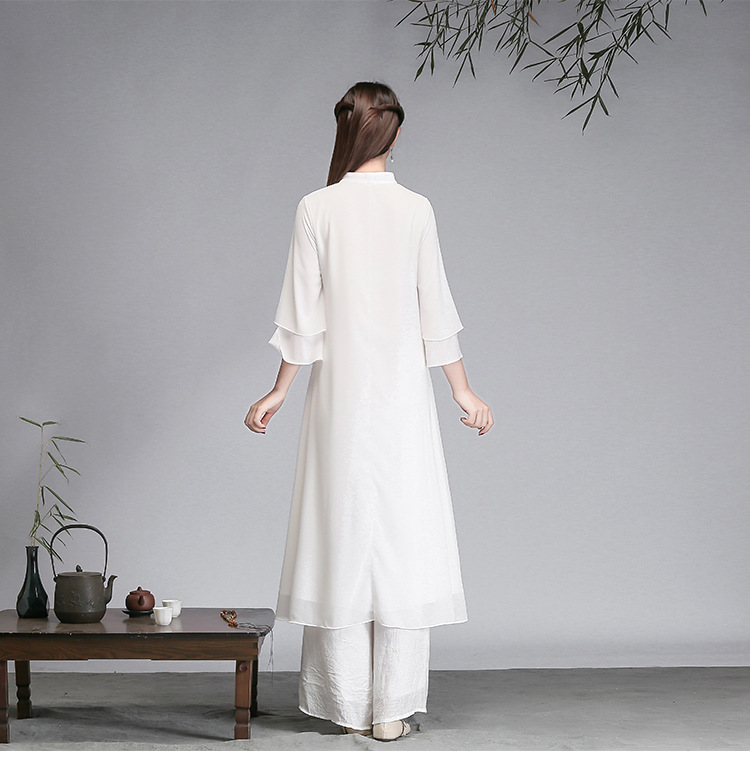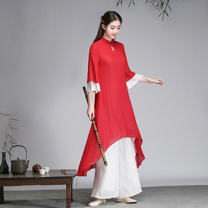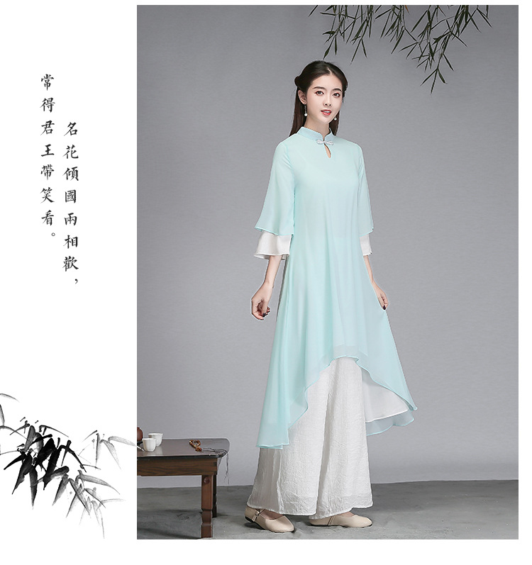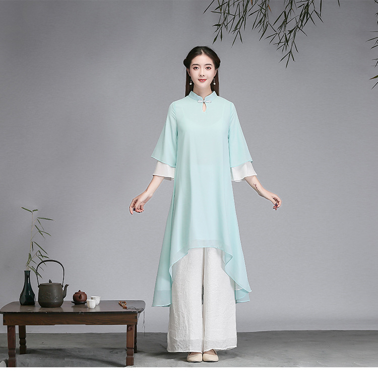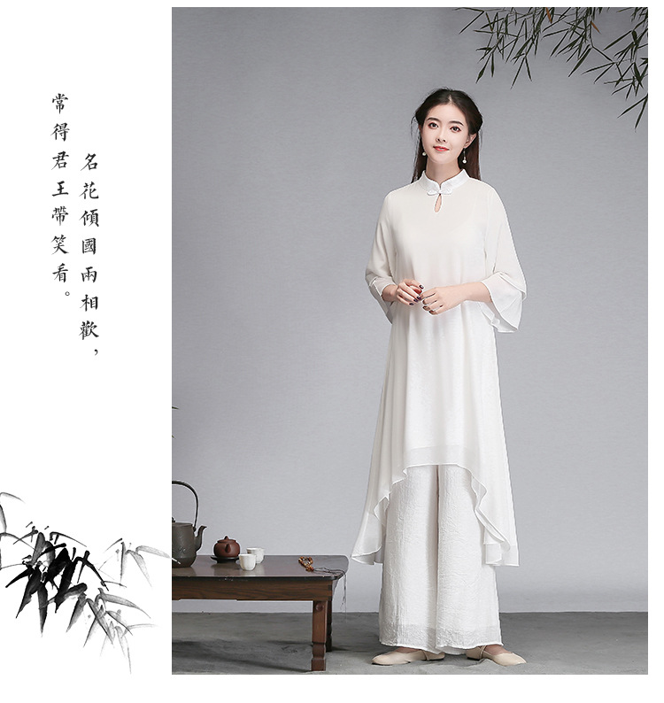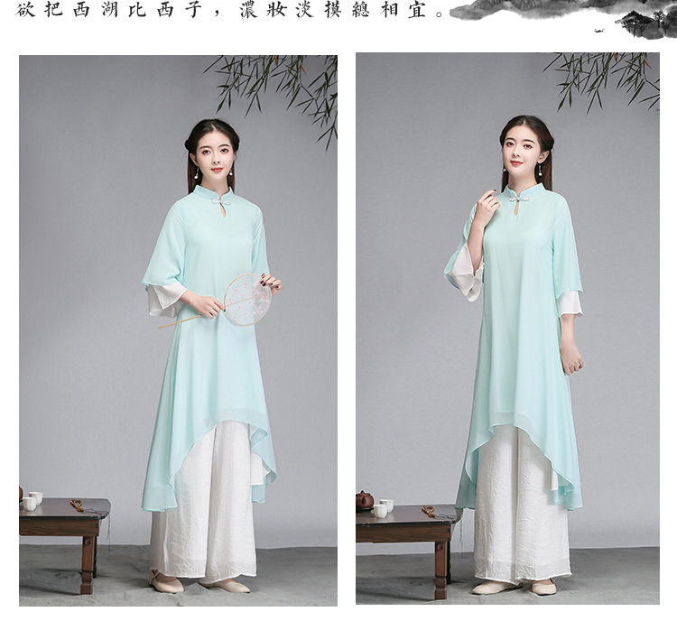 중국 스타일 선 여성 쉬폰 드레스 차 의류 선 명상 의류 선 댄스 의류 복고풍 스타일 Hanfu 투피스 세트스토어 가기