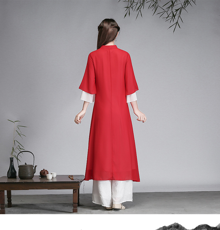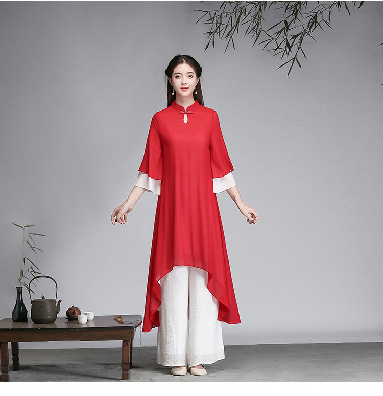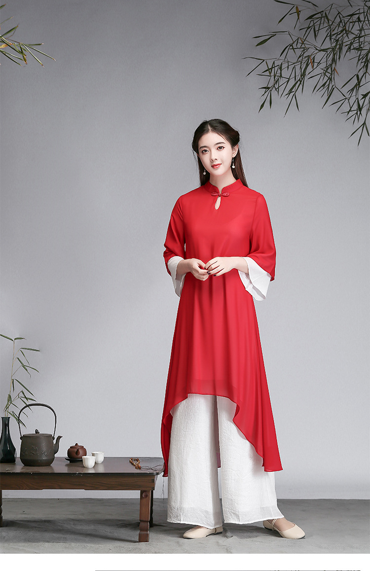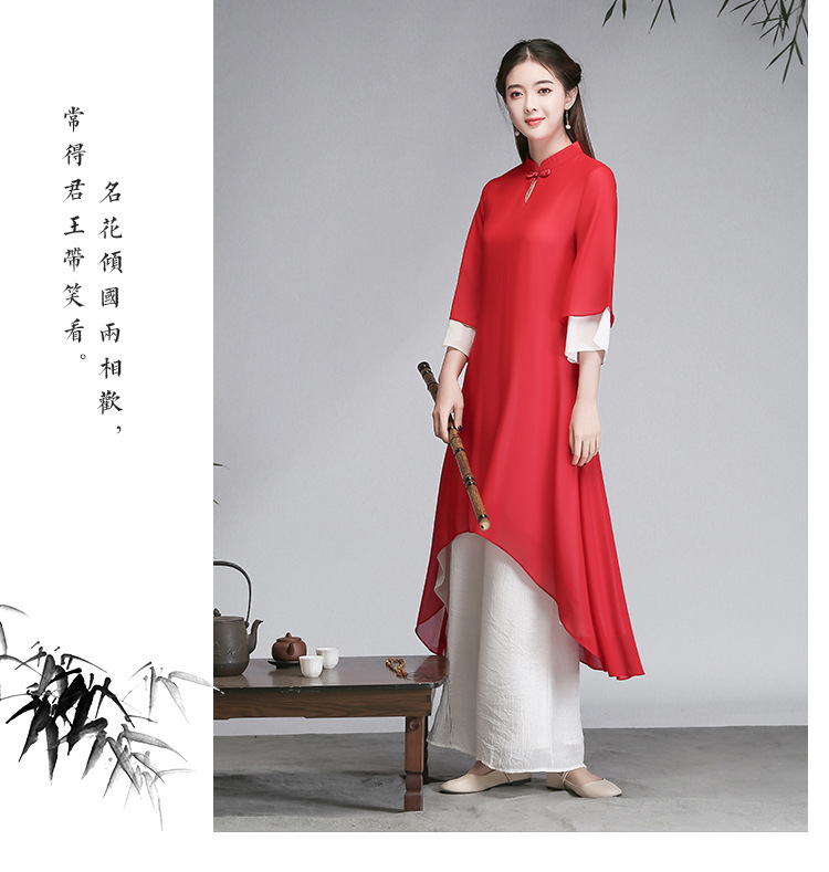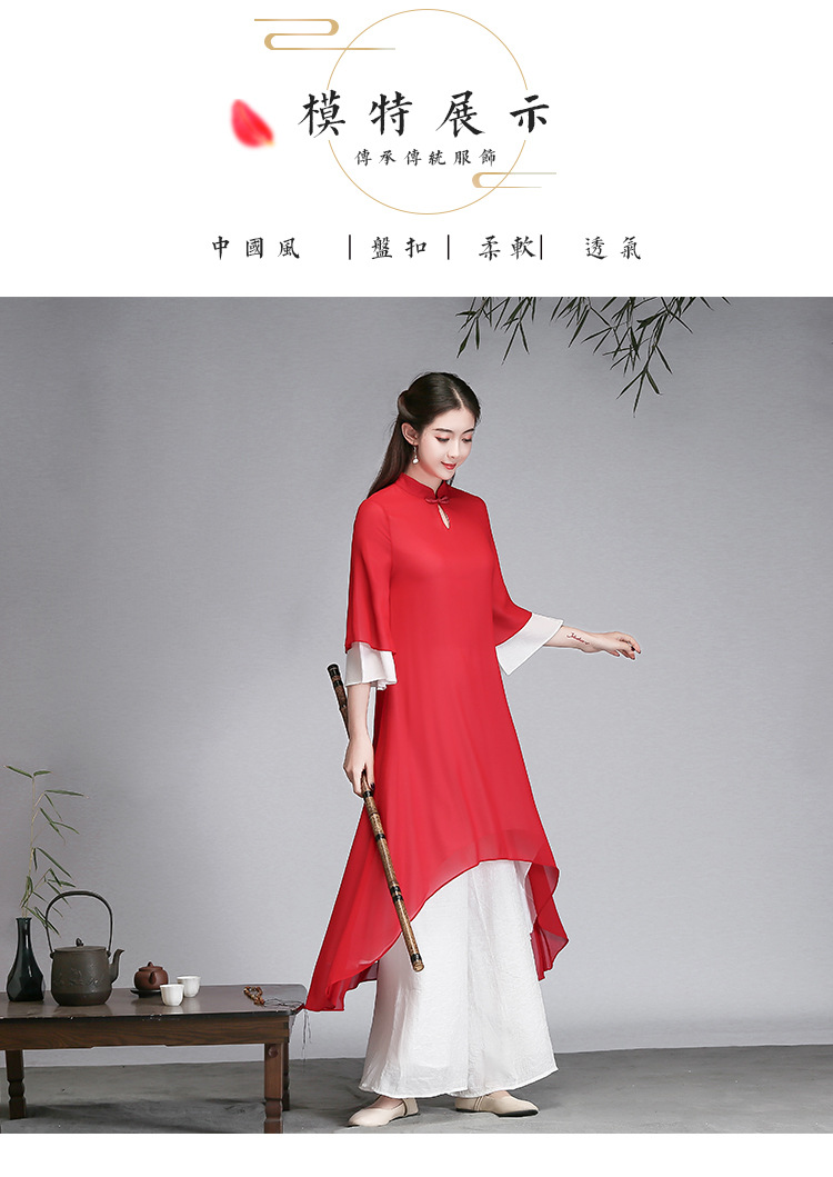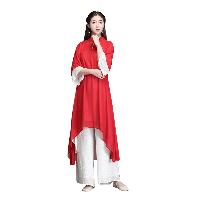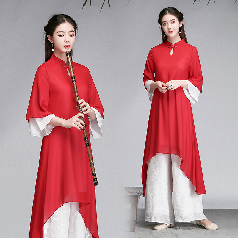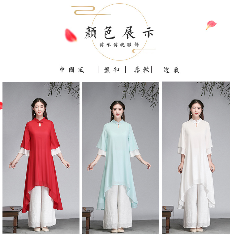 중국 스타일 선 여성 쉬폰 드레스 차 의류 선 명상 의류 선 댄스 의류 복고풍 스타일 Hanfu 투피스 세트스토어 가기