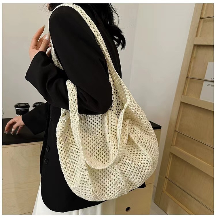 여름 인기 새로운 스타일 짠 여성 가방 휴대용 짠 가방 세련된 외국 스타일 어깨 메쉬 가방 가방 해변 여행스토어 가기