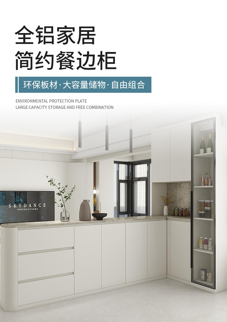佛山 맞춤형 올알루미늄 다이닝 사이드 캐비닛, 벽에 붙는 테이블과 수납장, 대용량 수납 캐비닛