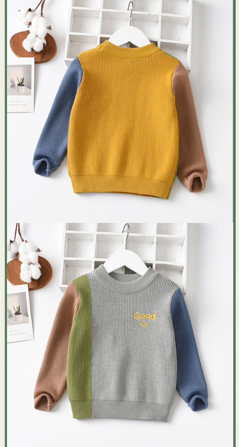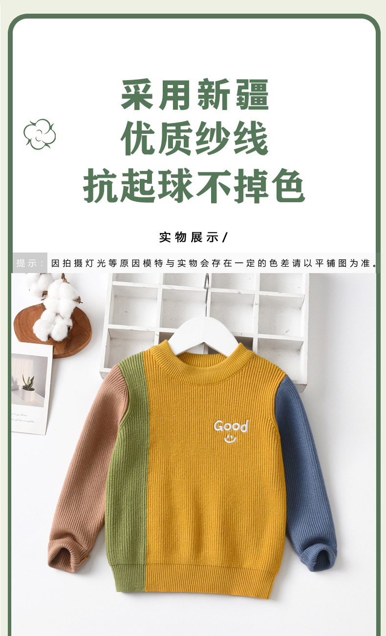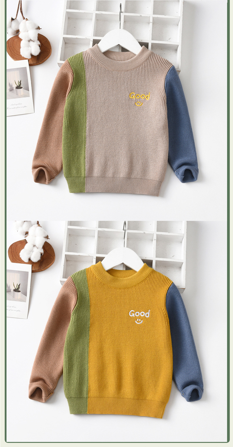 공장 직접 판매 Dalang 아동용 스웨터 도매 아동용 스웨터 라운드 넥 풀오버 소년과 소녀를위한 대비 색상 스웨터스토어 가기