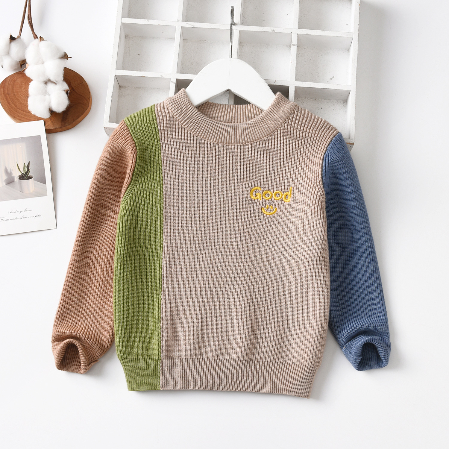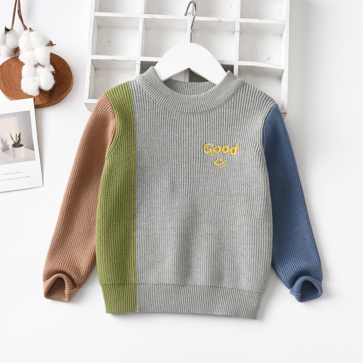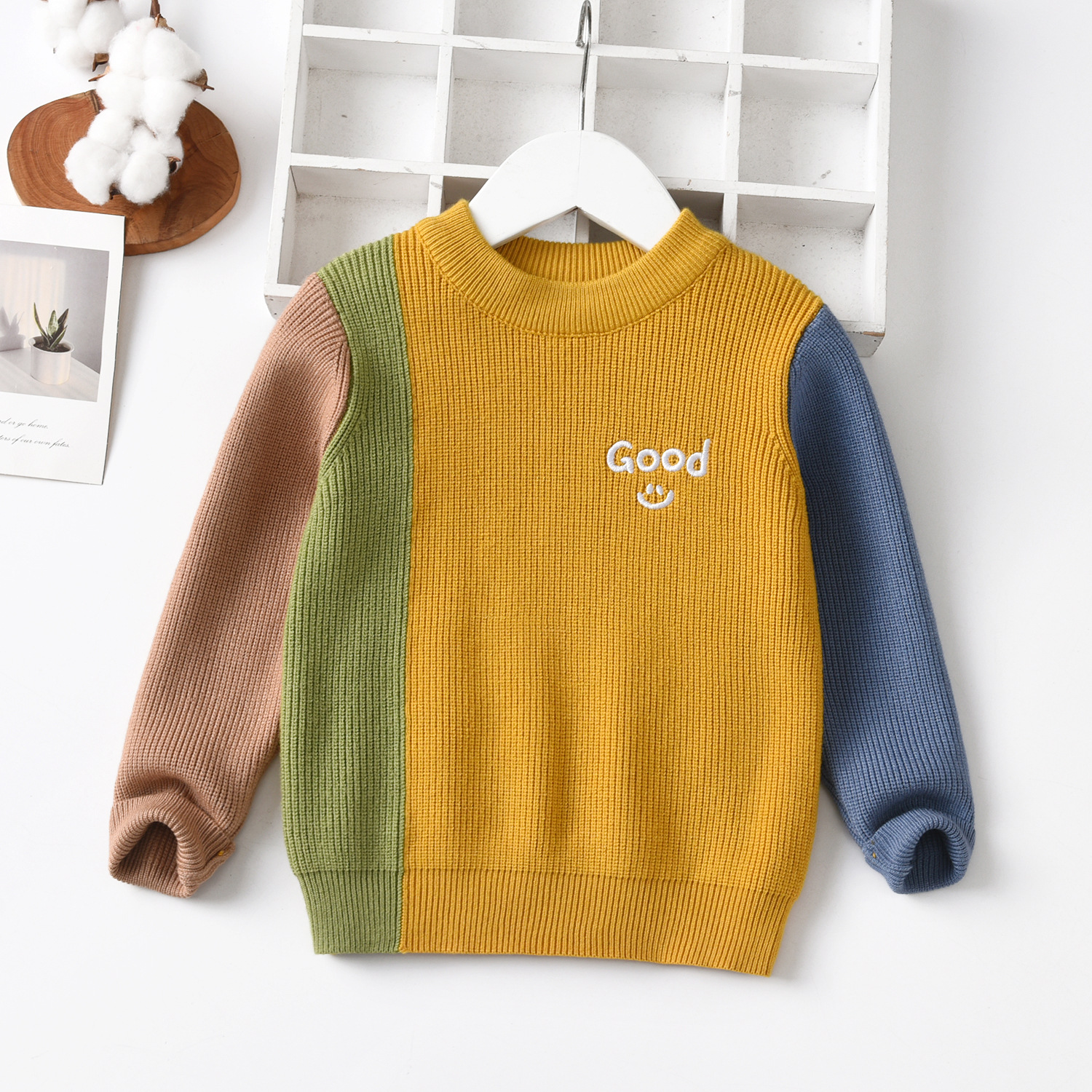 공장 직접 판매 Dalang 아동용 스웨터 도매 아동용 스웨터 라운드 넥 풀오버 소년과 소녀를위한 대비 색상 스웨터스토어 가기