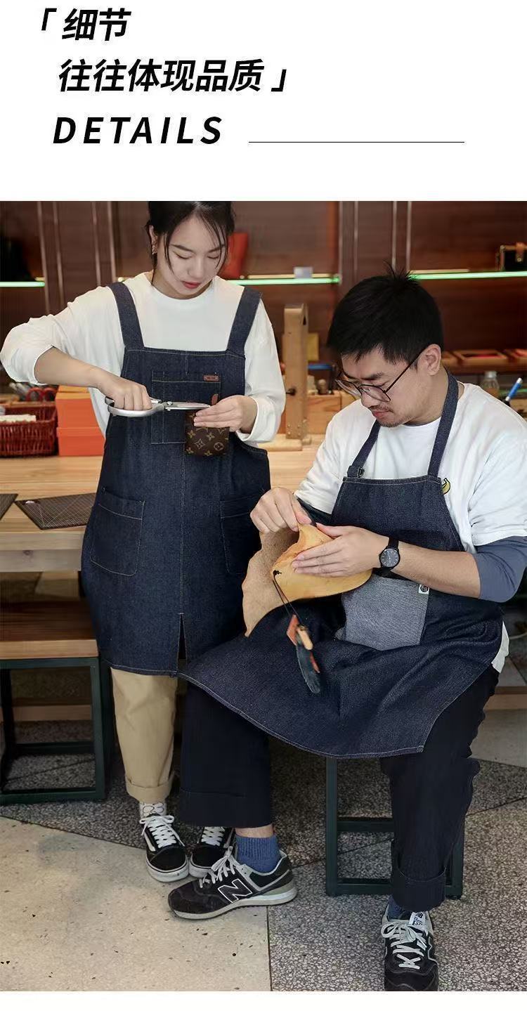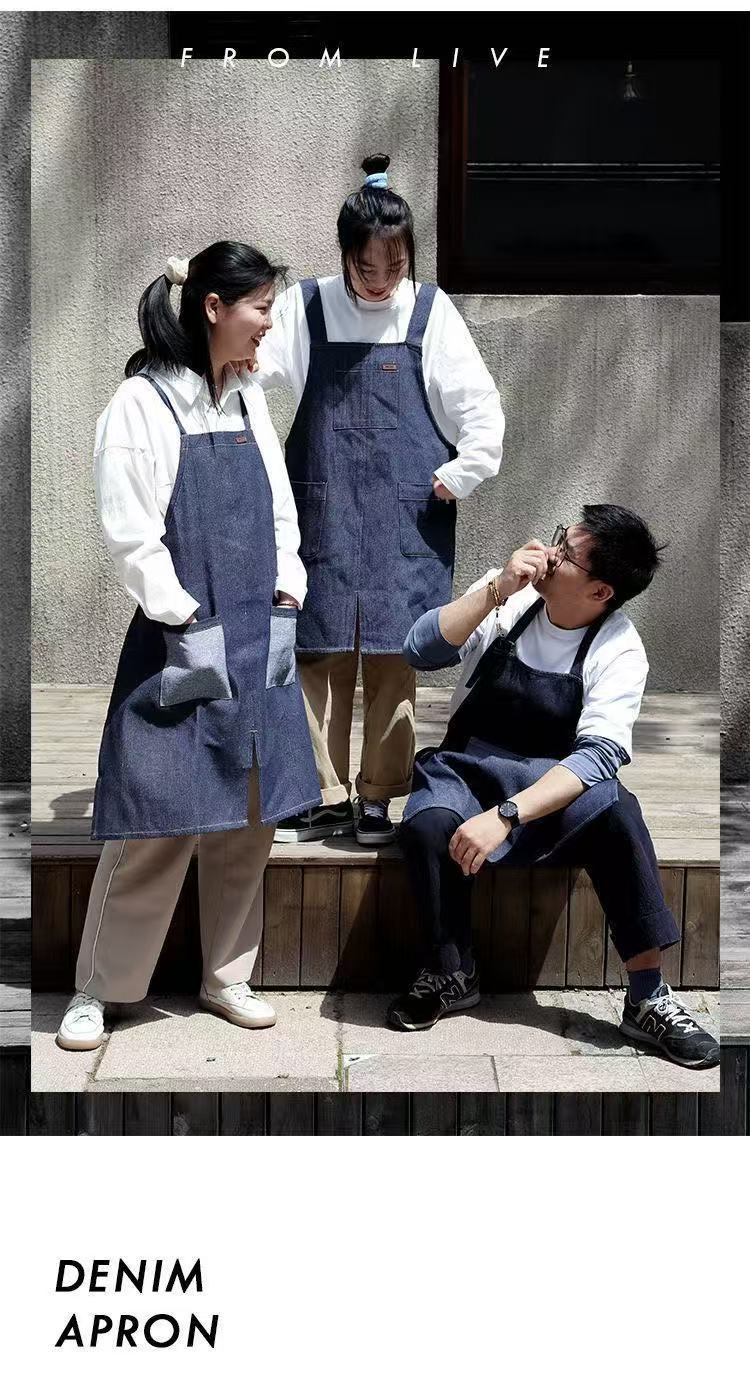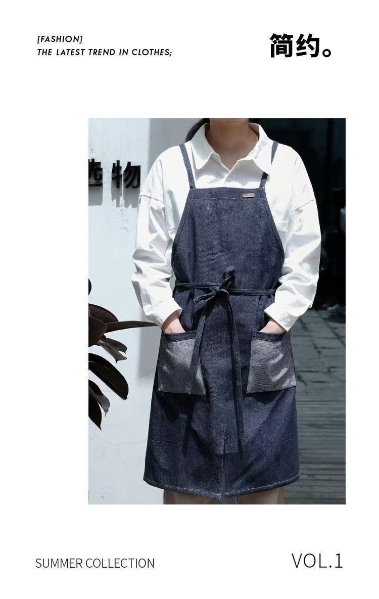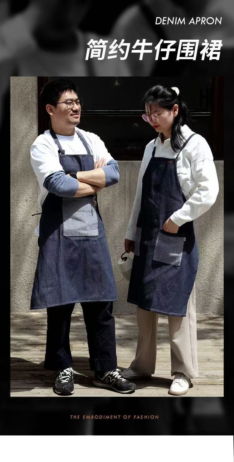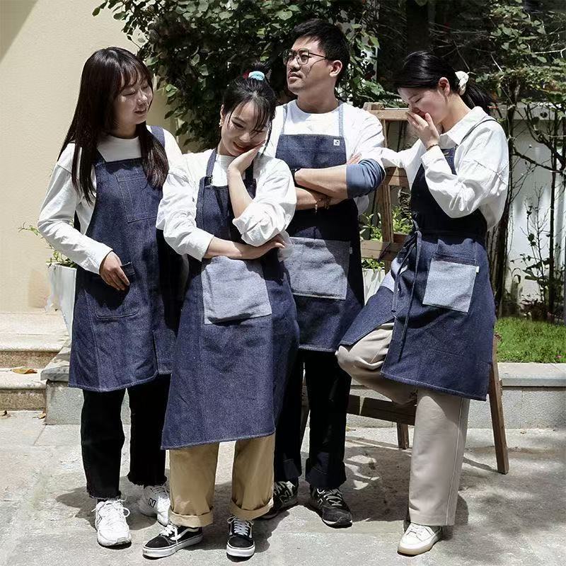 대외 무역 앞치마 한국식 데님 스타일 홀터넥 남녀 방유 케이터링 밀크티 숍 카페 웨이터 작업 앞치마스토어 가기