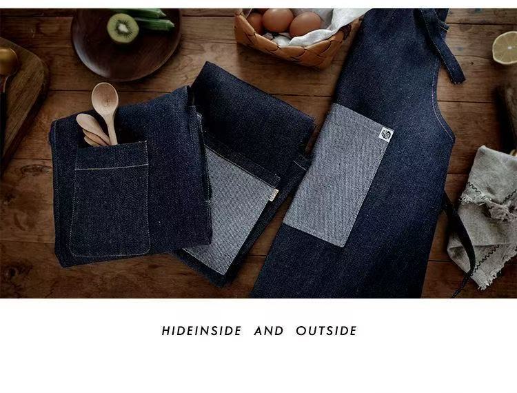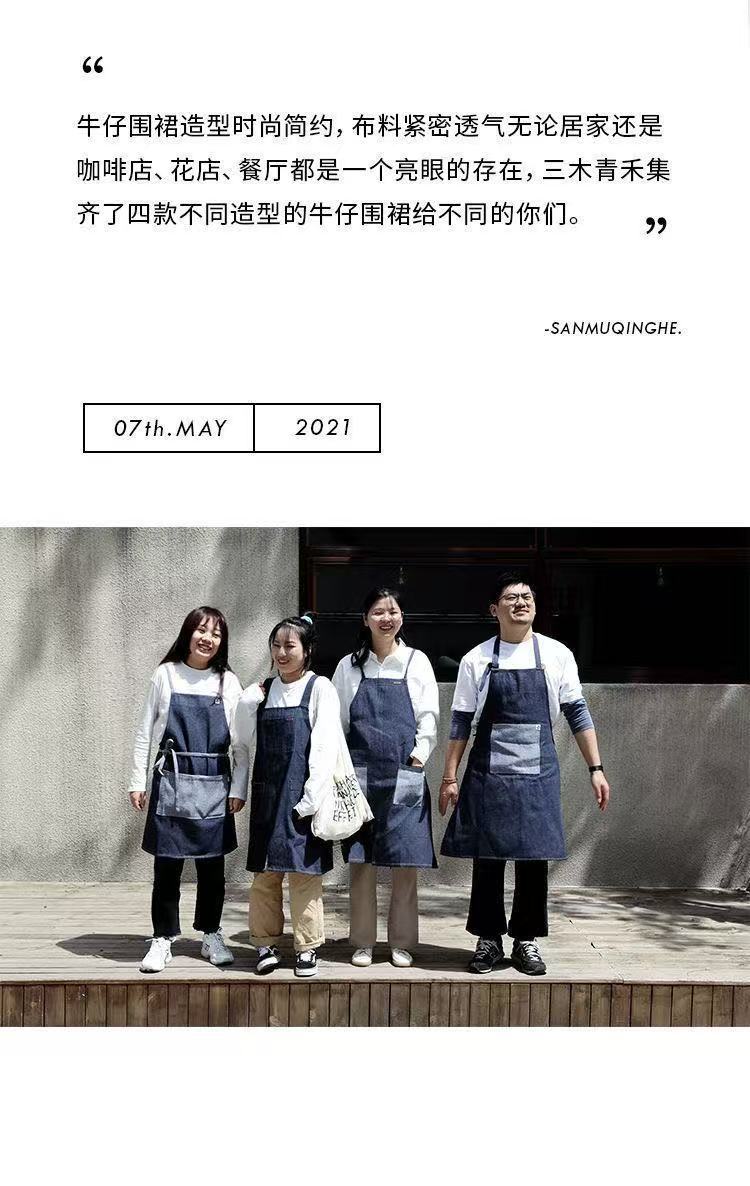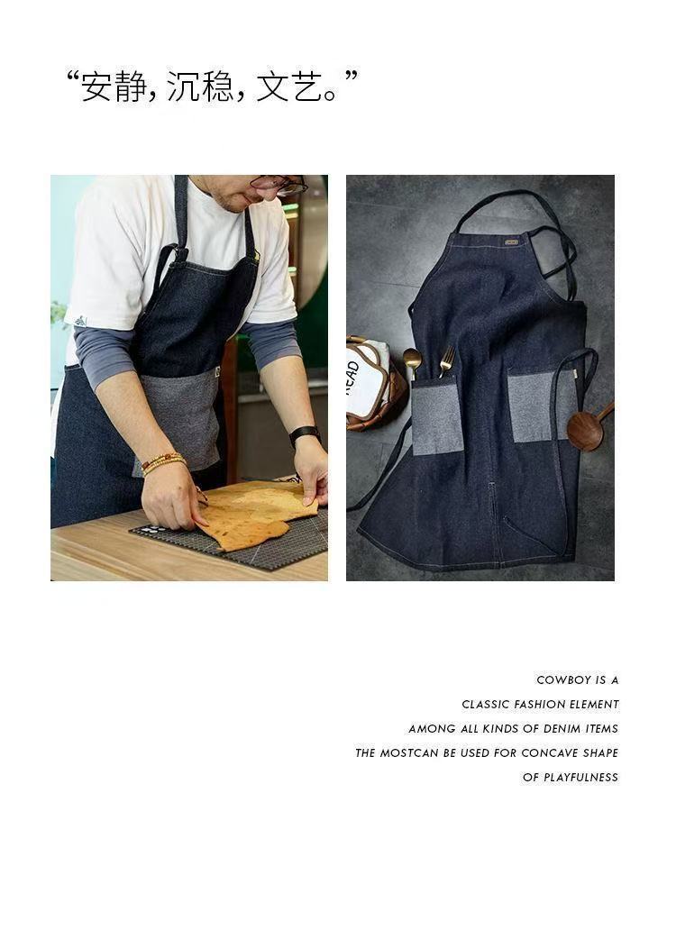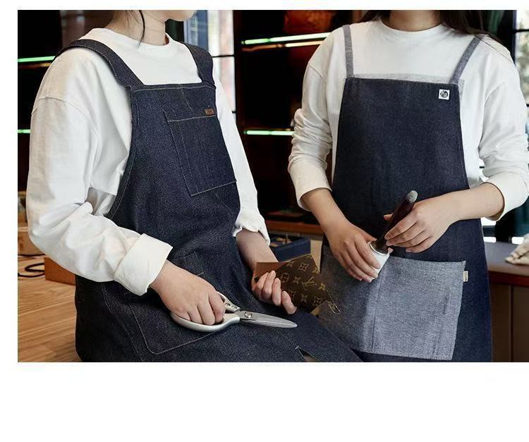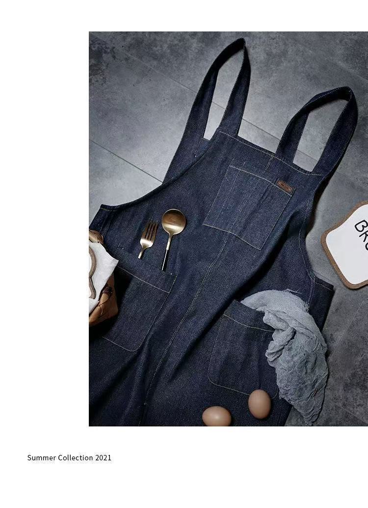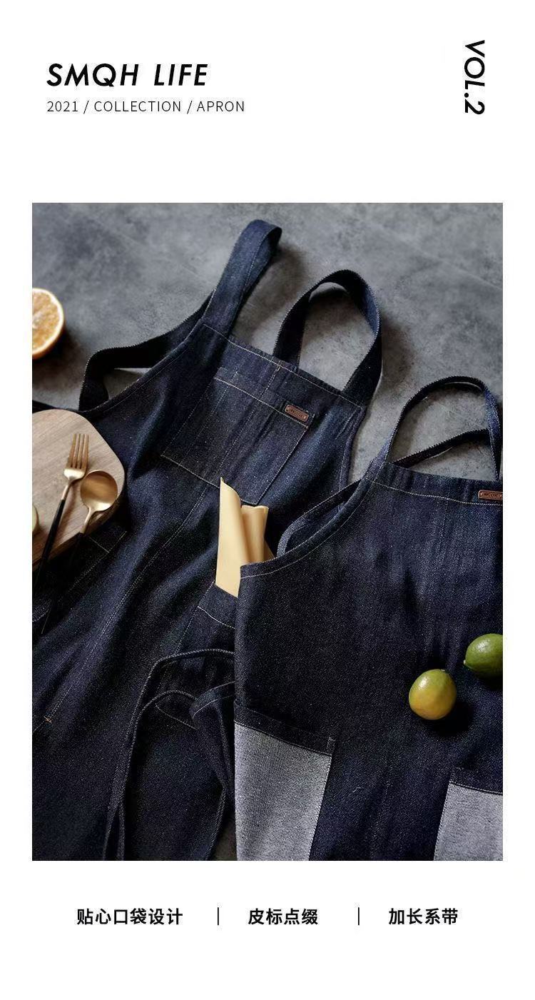 대외 무역 앞치마 한국식 데님 스타일 홀터넥 남녀 방유 케이터링 밀크티 숍 카페 웨이터 작업 앞치마스토어 가기