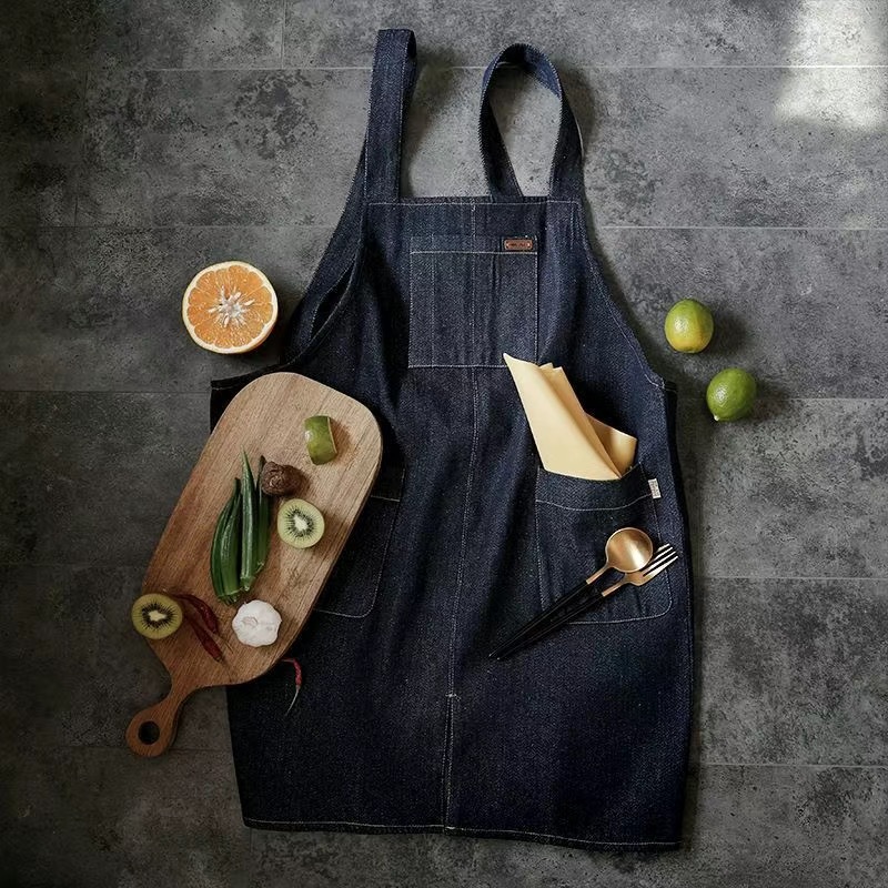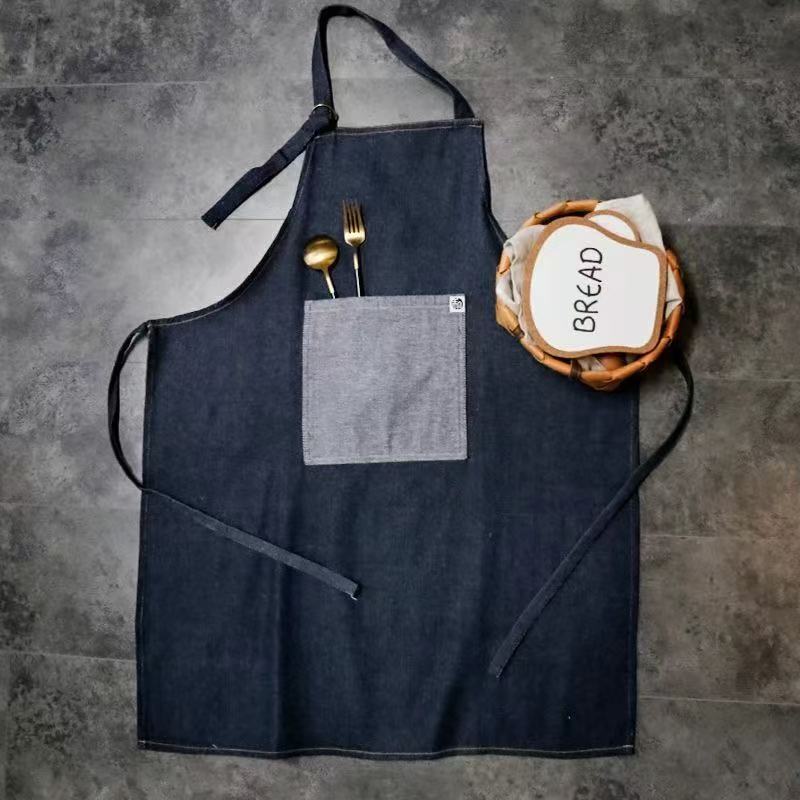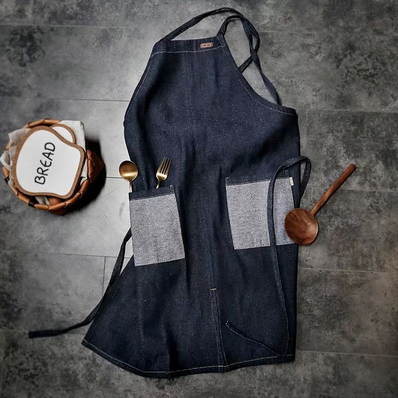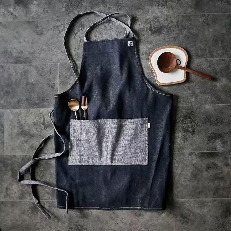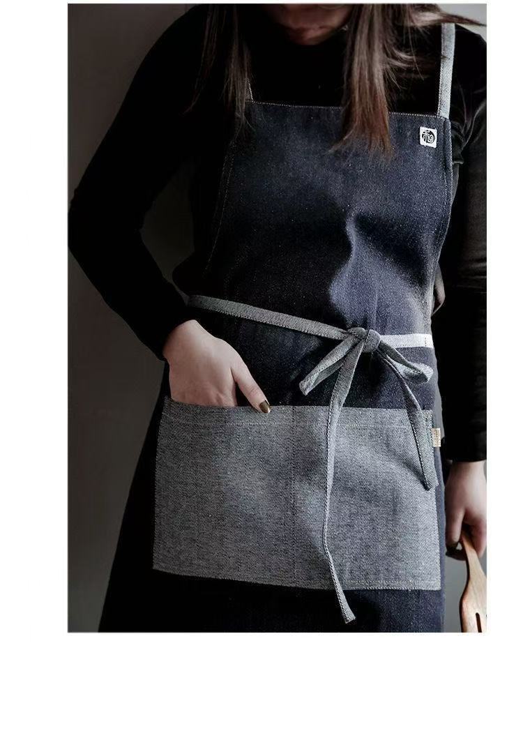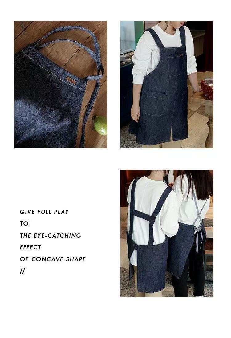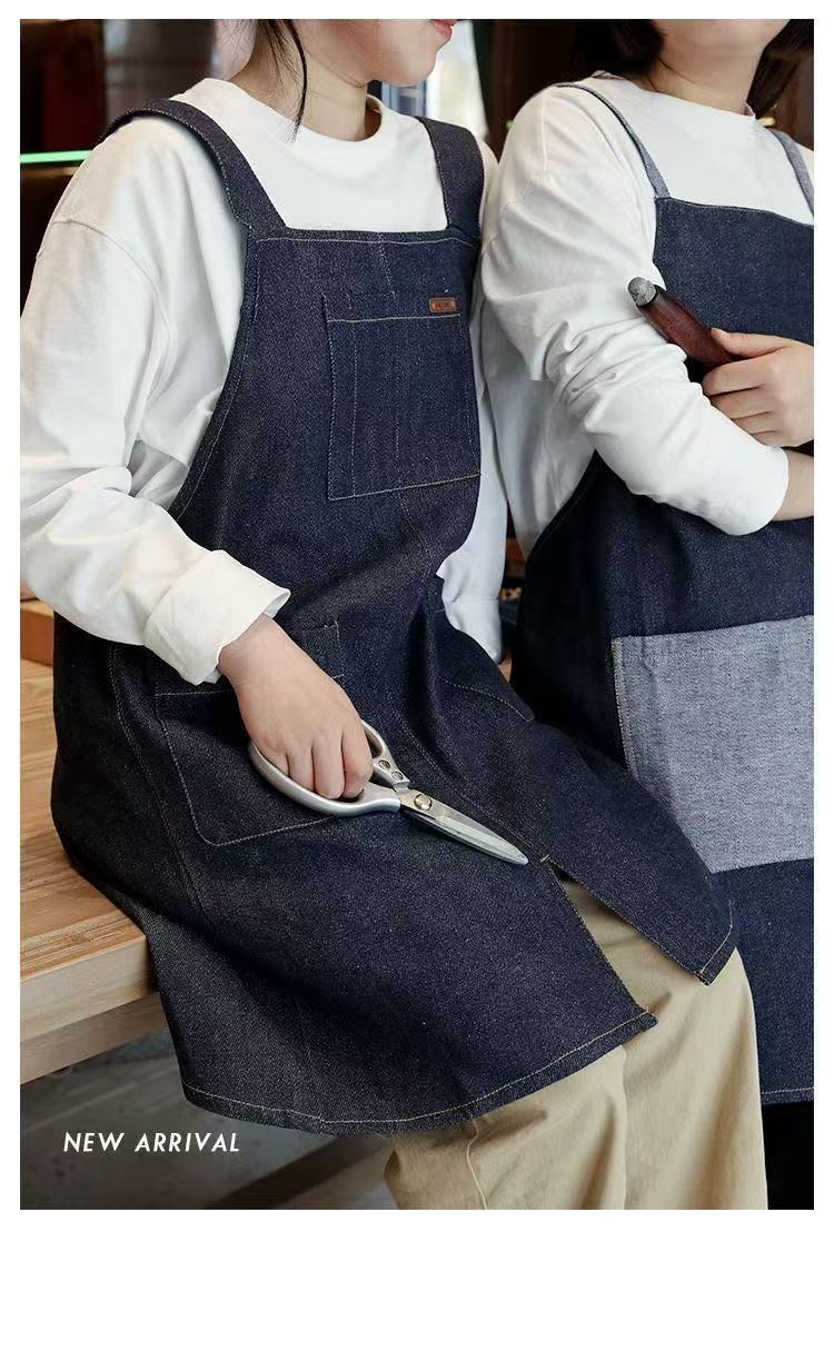 대외 무역 앞치마 한국식 데님 스타일 홀터넥 남녀 방유 케이터링 밀크티 숍 카페 웨이터 작업 앞치마스토어 가기