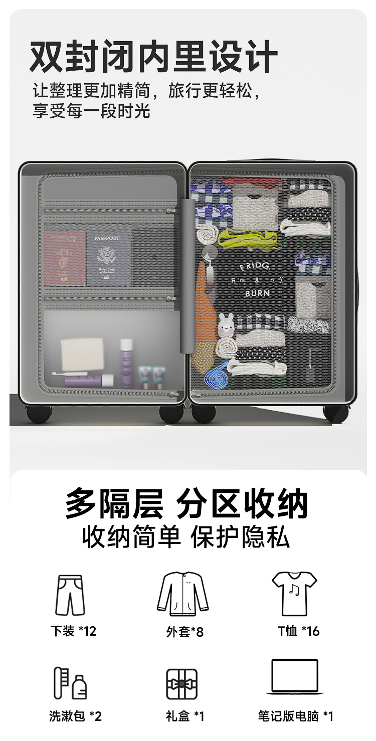 Xiaoxiangfeng의 인기 업그레이드된 비즈니스 가방, 가볍고 내마모성이 뛰어나며 부드러운 롤러, 건식 및 습식 분리 디자인 수하물