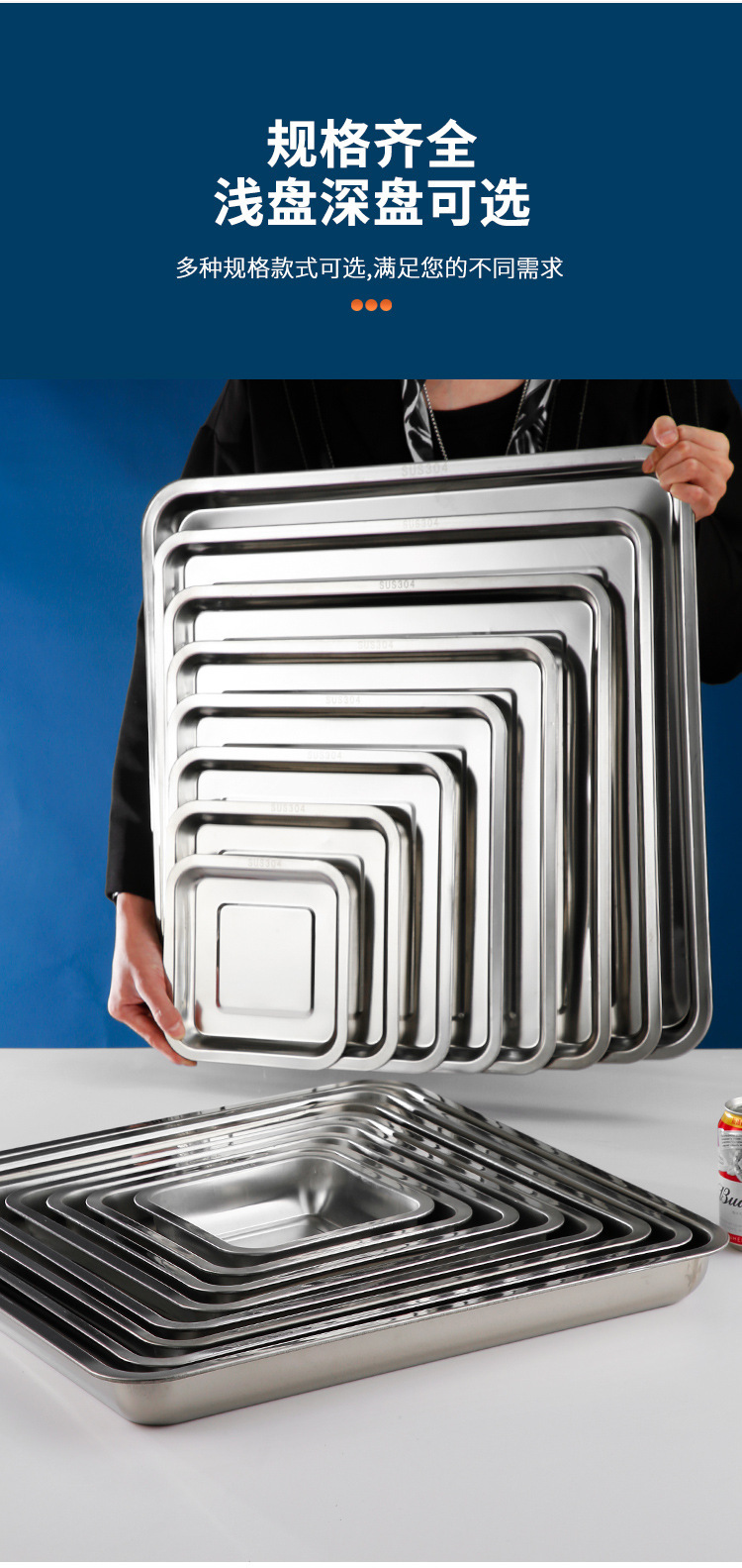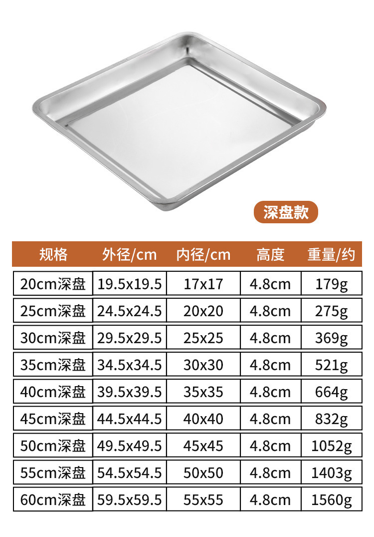 304 스테인레스 스틸 사각 접시 사각 접시 주방 트레이 찜 밥 바베큐 접시 철판 디너 접시 야채 접시 만두 접시