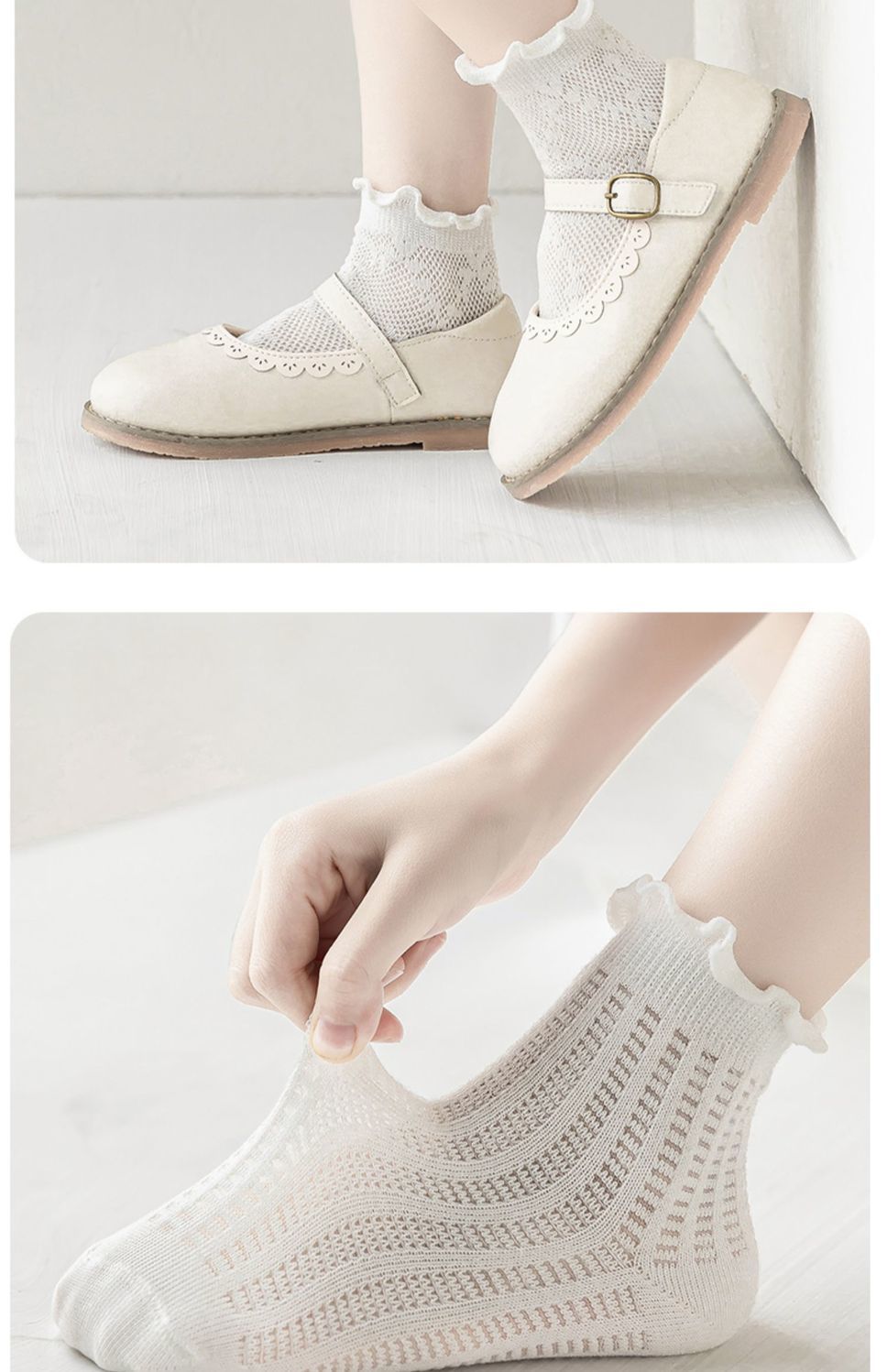 어린이 흰색 양말 소녀 여름 얇은면 양말 소녀 한국 공주 흰색 양말 봄과 가을 메쉬 학생면 양말스토어 가기