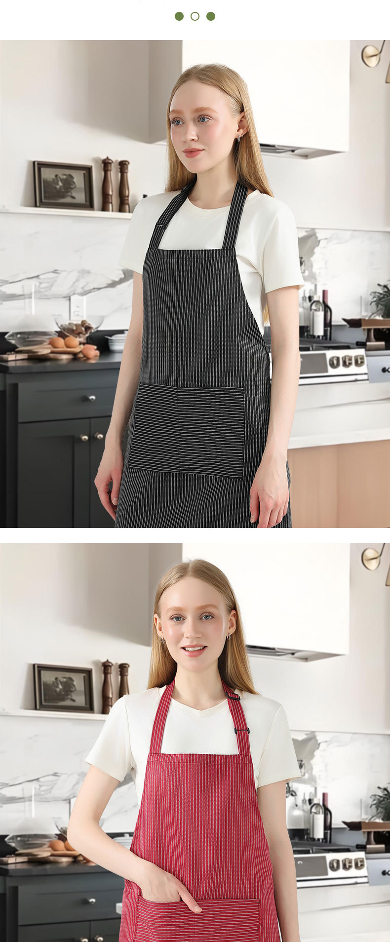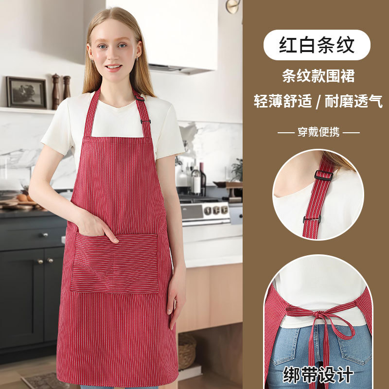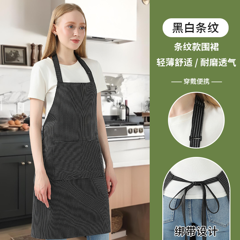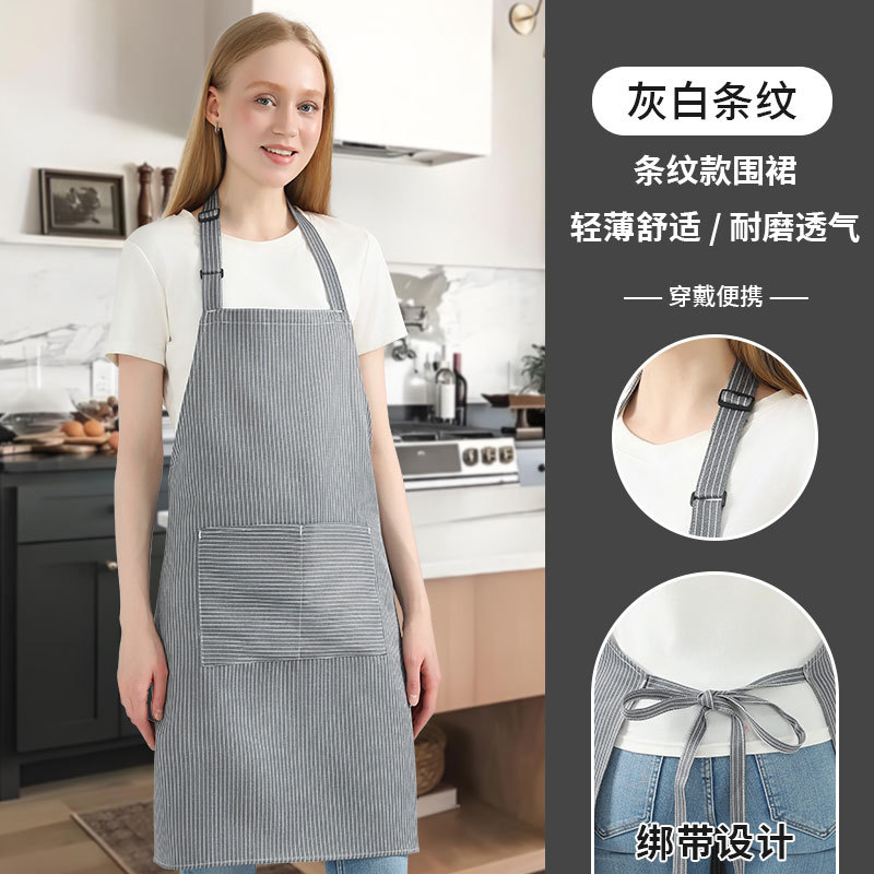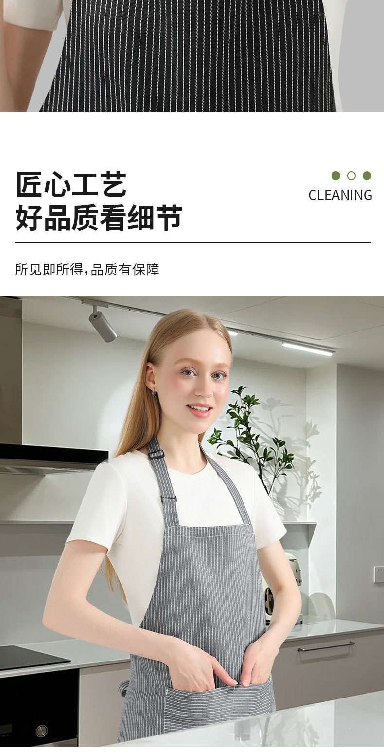 여성용 가정용 주방용 새 폴리에스터 면 앞치마 맞춤형 로고 인쇄 대형 포켓 줄무늬 간단한 커피숍 작업복