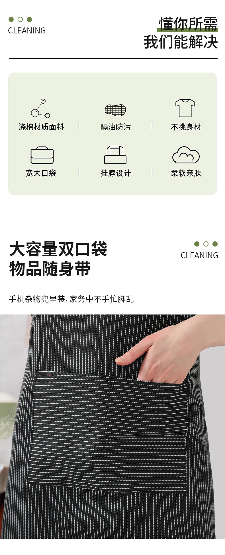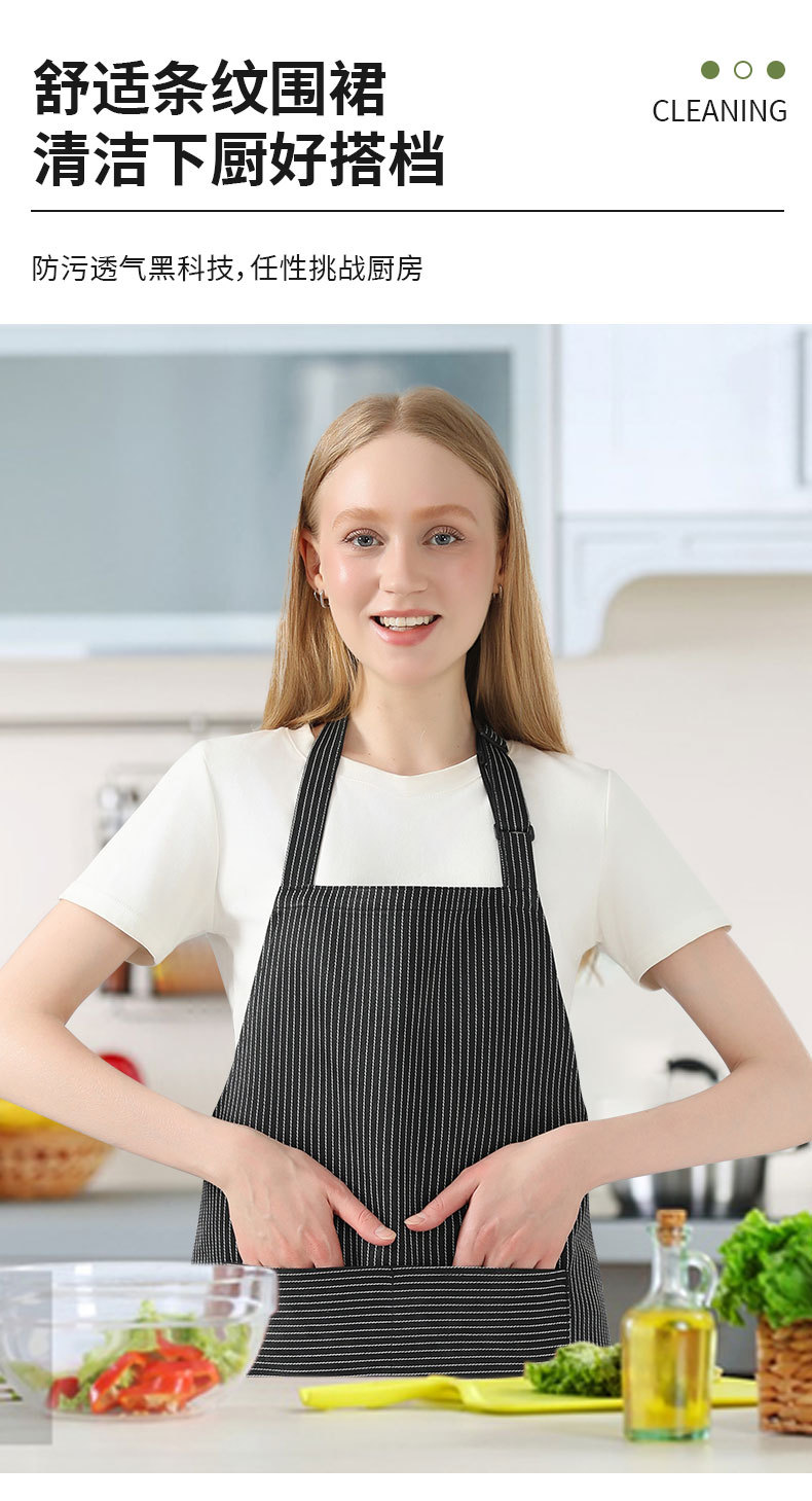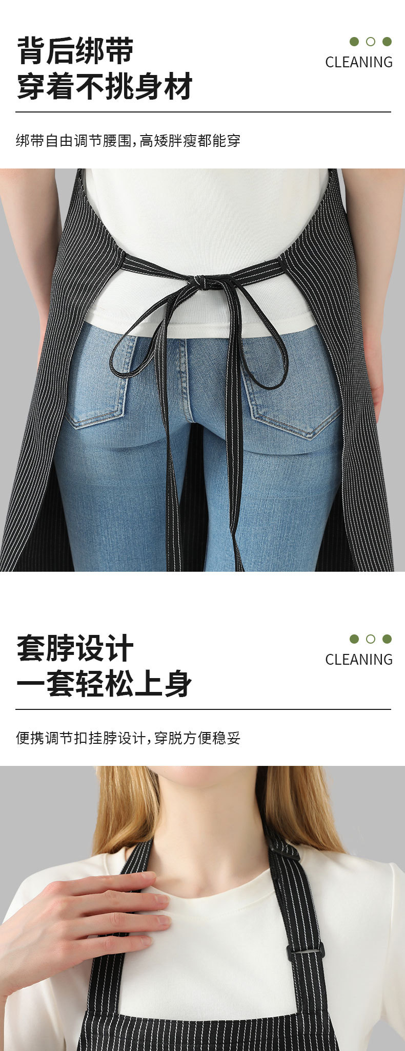 여성용 가정용 주방용 새 폴리에스터 면 앞치마 맞춤형 로고 인쇄 대형 포켓 줄무늬 간단한 커피숍 작업복