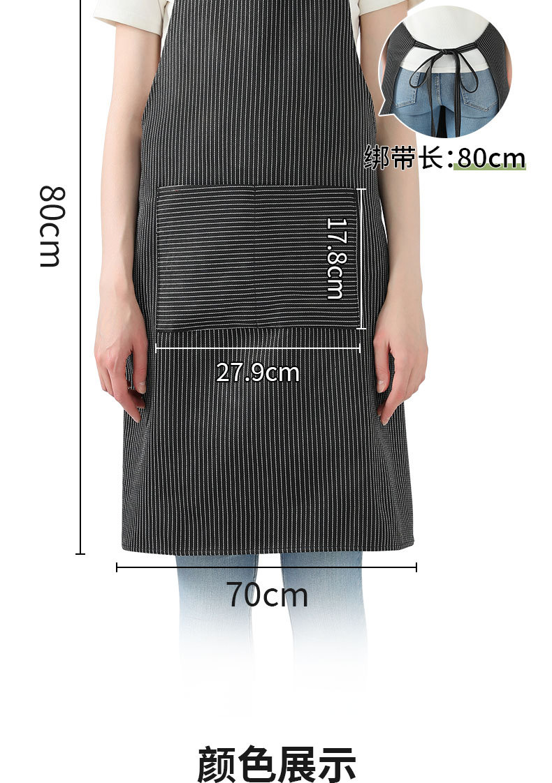 여성용 가정용 주방용 새 폴리에스터 면 앞치마 맞춤형 로고 인쇄 대형 포켓 줄무늬 간단한 커피숍 작업복스토어 가기