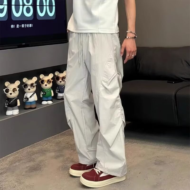 남성용 아메리칸 플리츠 파라트리퍼스 바지 2025 여름 얇은 와이드 레그 스트레이트 오버올 야외 방수 캐주얼 바지스토어 가기