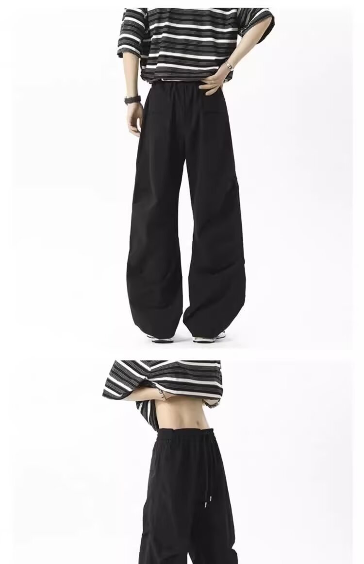 남성용 아메리칸 플리츠 파라트리퍼스 바지 2025 여름 얇은 와이드 레그 스트레이트 오버올 야외 방수 캐주얼 바지