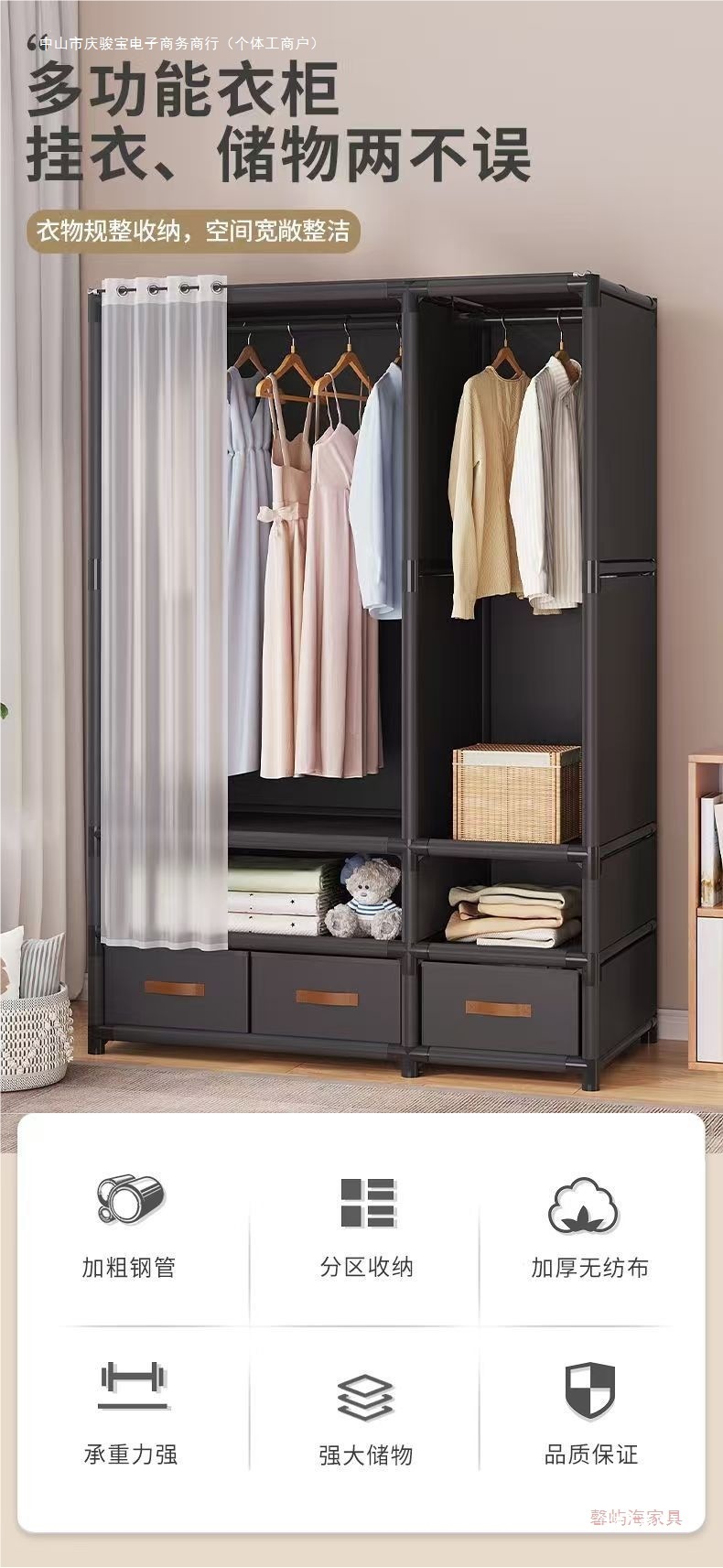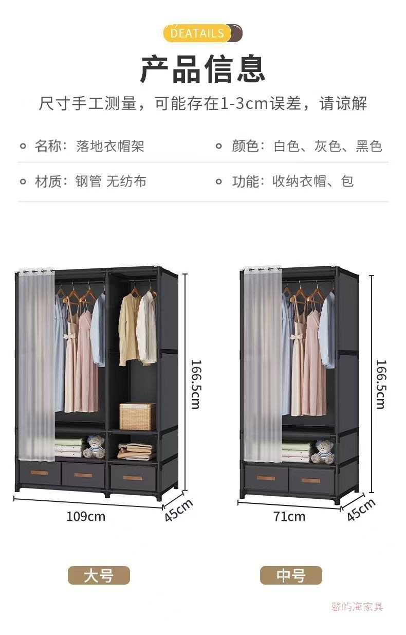 플로어 스탠딩 옷장, 가정용 천 옷장, 간이 옷장, 침실, 새 임대 주택, 조립식 소형 아파트, 재고 있음스토어 가기
