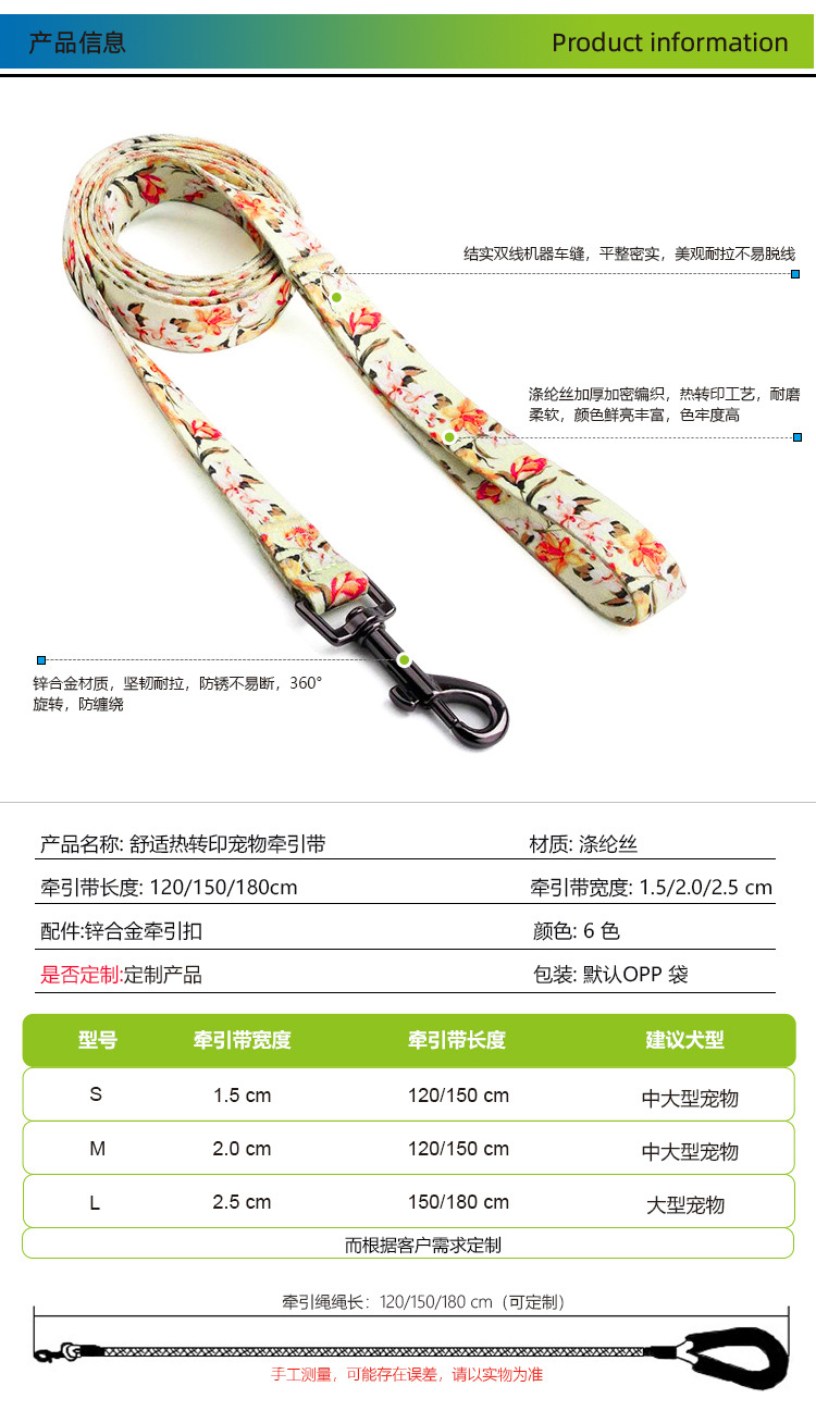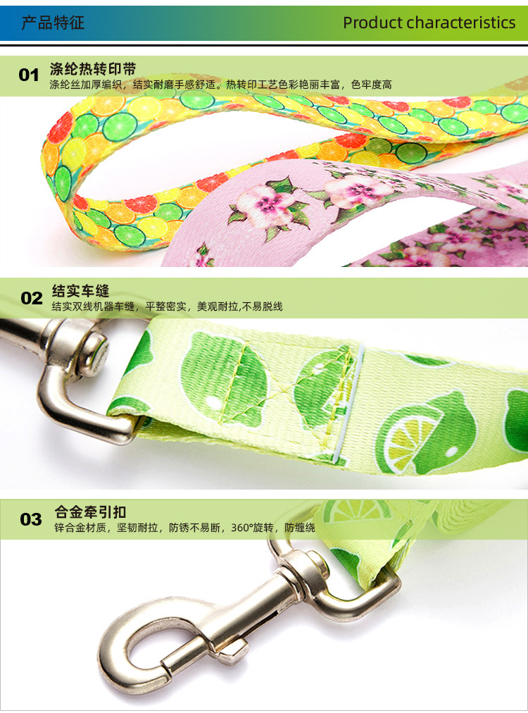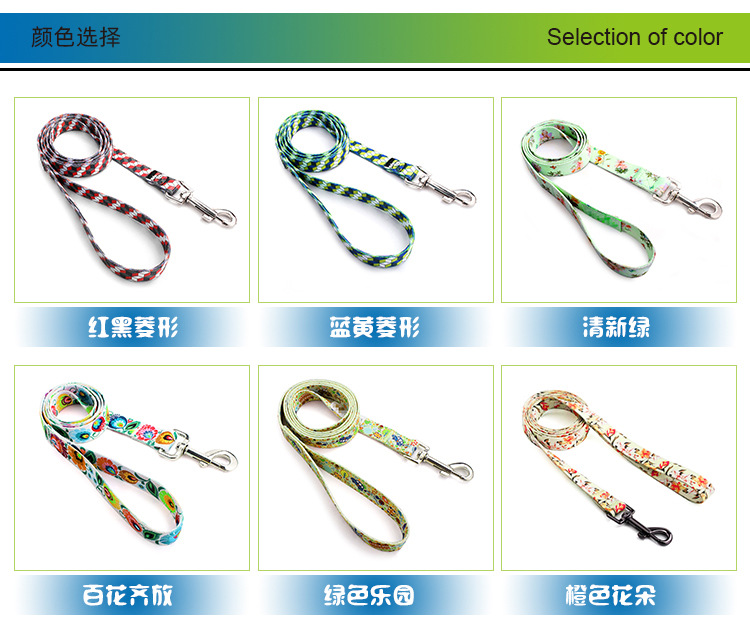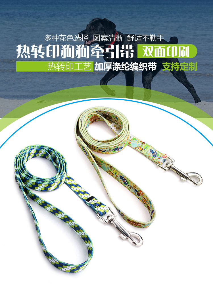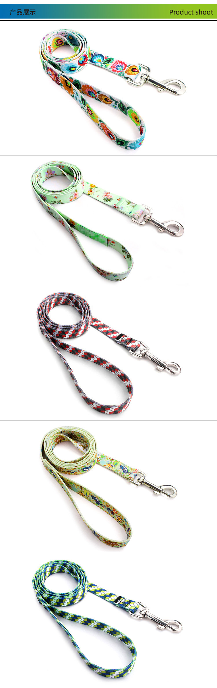 맞춤형 애완견 가죽끈, 인기 있는 열전달 인쇄, 다양한 색상, 트렌디한 폴리에스터 아연 합금 후크 버클 개 산책용 가죽끈스토어 가기