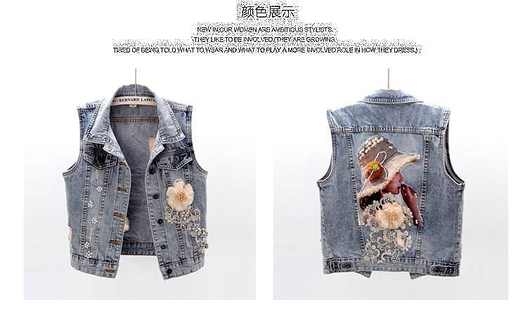 재킷 데님 한국 2021 양복 조끼 조끼 가을 민소매 짧은 꽃 새 탑 여성 버전 다이아몬드 트렌드스토어 가기