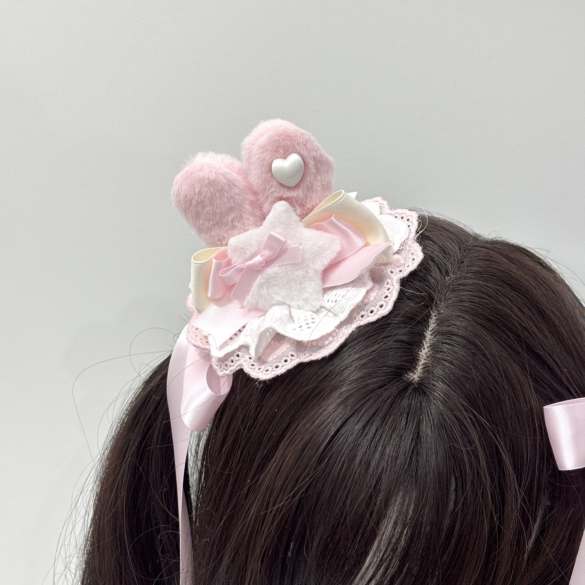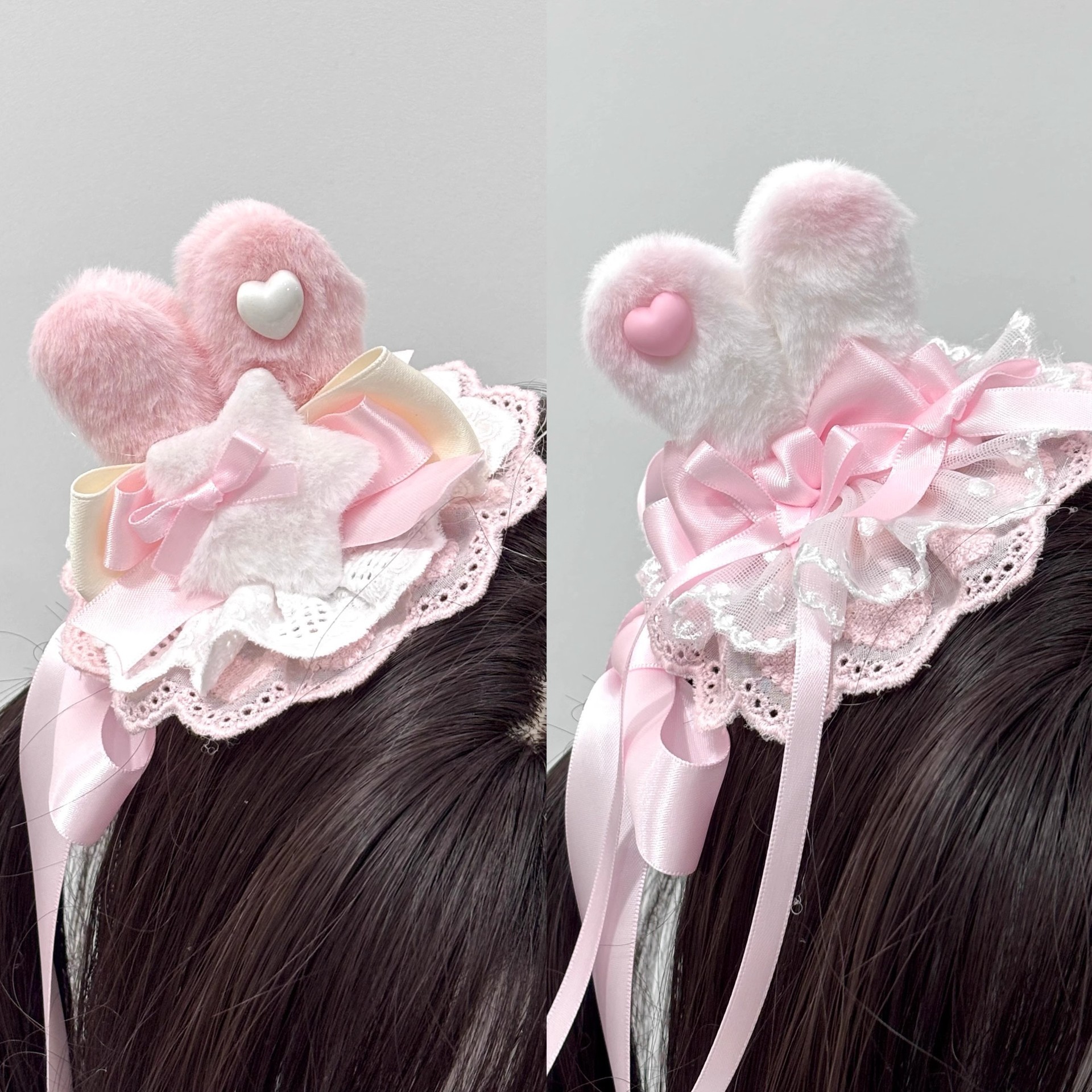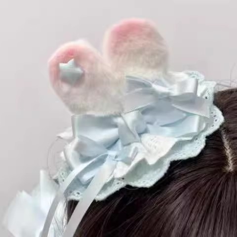 귀여운 리본, 달콤한 소녀 귀 머리핀, 부드러운 소녀 공주 스타일 절묘한 헤어 액세서리, 핑크 레이스 패션스토어 가기