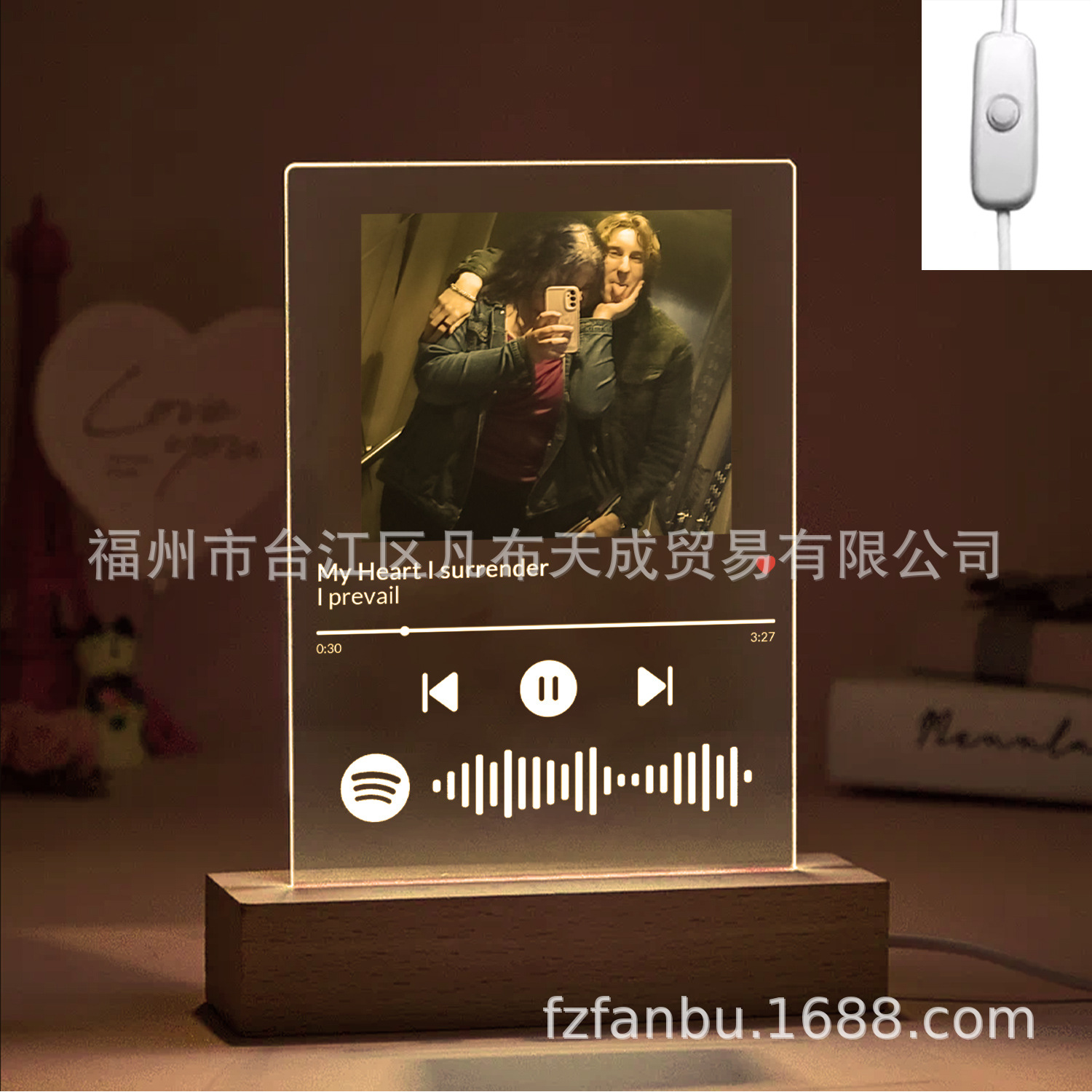 국경 간 인기 판매 아크릴 음악 맞춤형 야간 조명 Spotify 노래 노트 사진 기념품 데스크탑 장식품