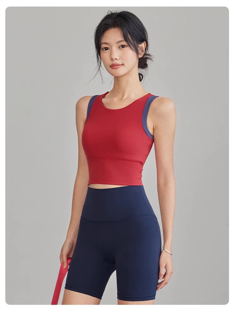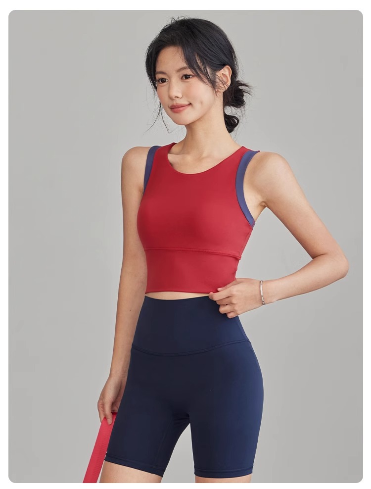 DC 충격 방지 I 자형 조끼 스포츠 브라 여성용 올인원 대비 색상 피트니스 브라 러닝 요가웨어 탑 여름